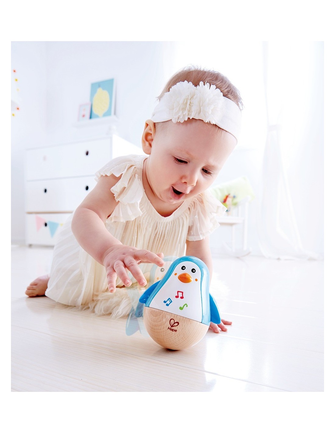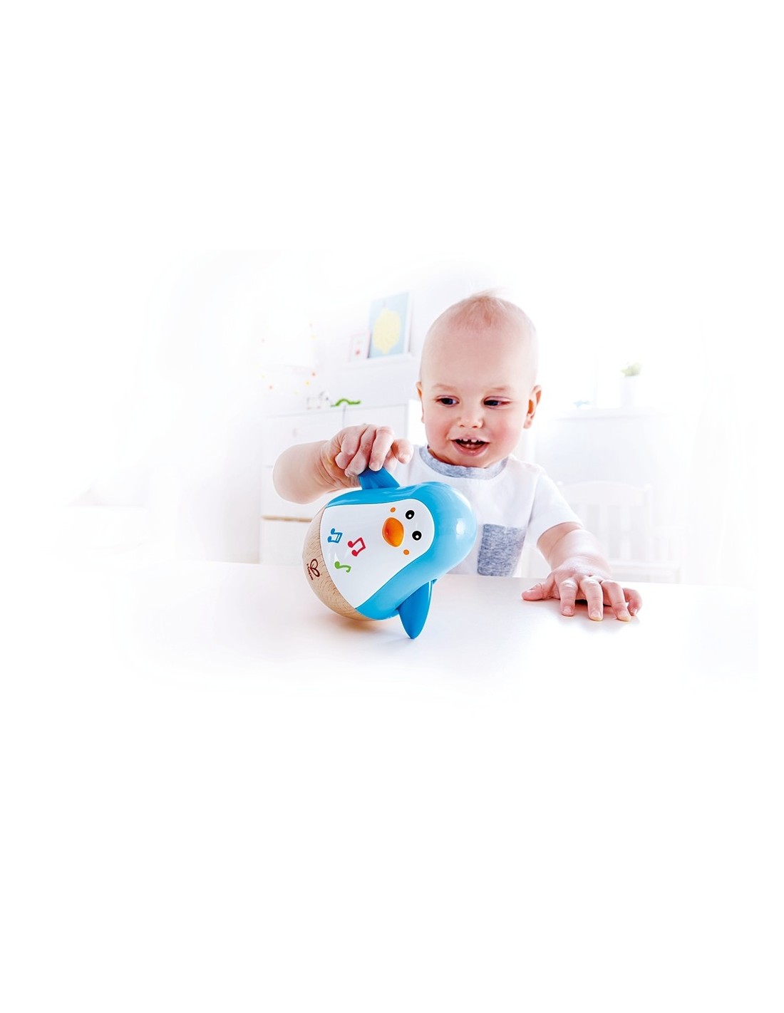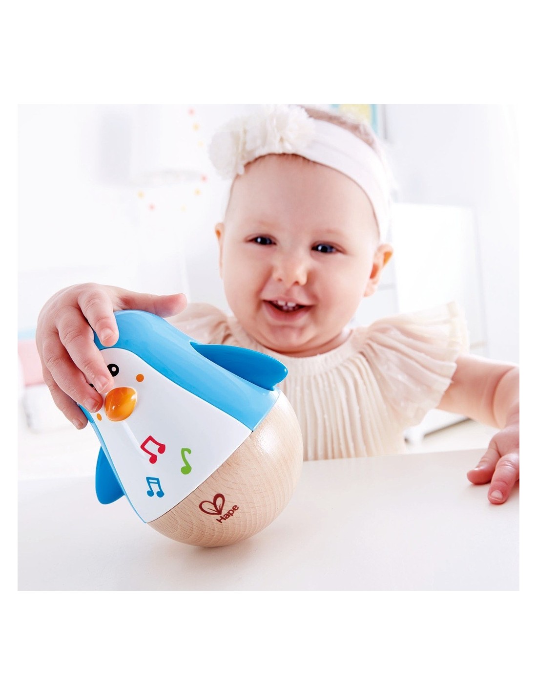 La marca alemanya de joguines Hape ens porta, dins les seves novetats, aquest bonic pingüí musical saltamartí que captivarà als més petits amb els seus colors vius, el seu simpàtic aspecte i la música que emet quan el balanceges. Pensat per a nens i nenes a partir de 6 mesos, està fabricat en fusta i la seva mida de 12 cm x 11 cm és ideal perquè puguin jugar amb ell sense córrer cap risc. Un company ideal per estimular-los mitjançant els sons i el moviment continu del seu balanceig.