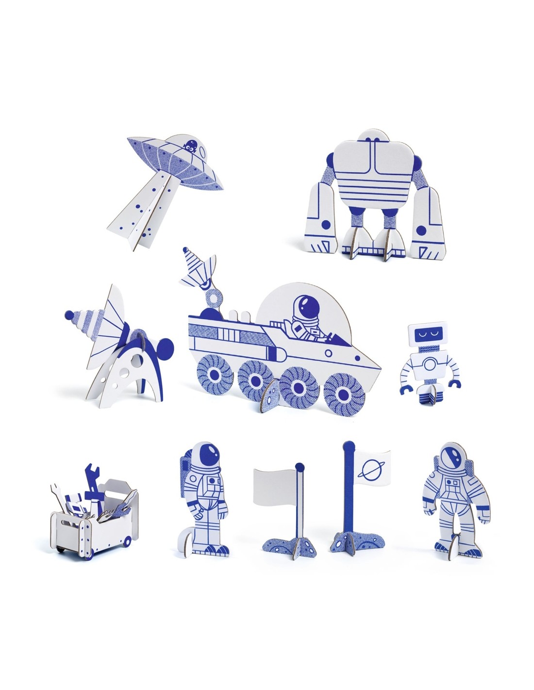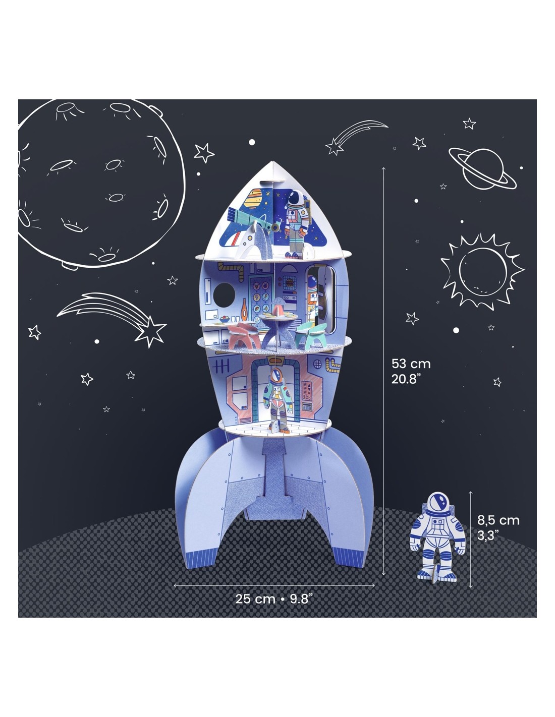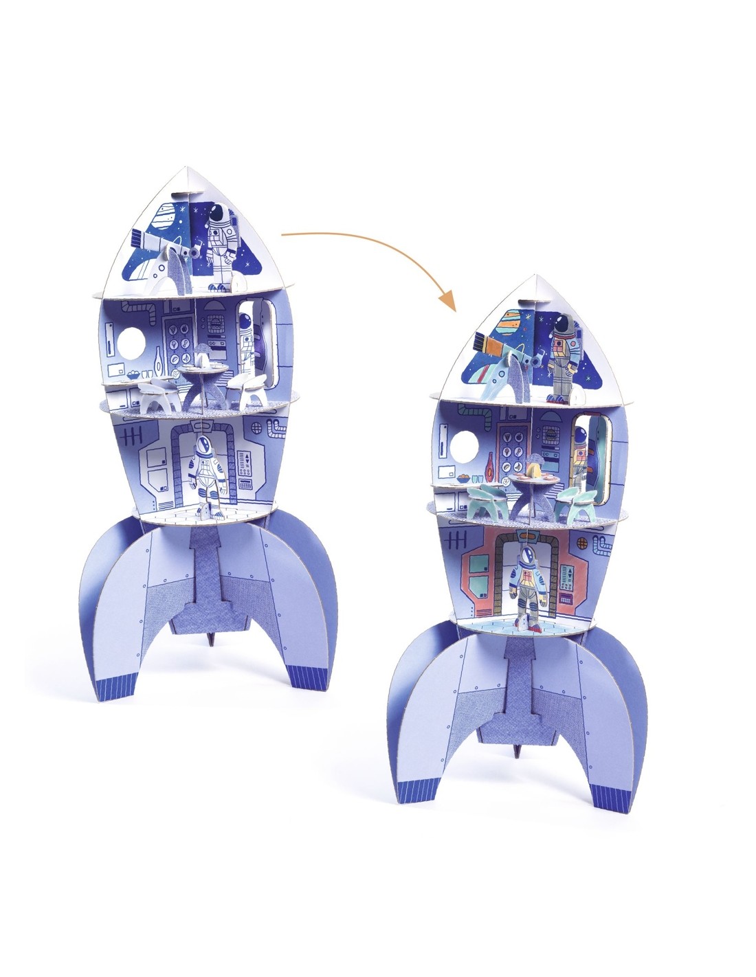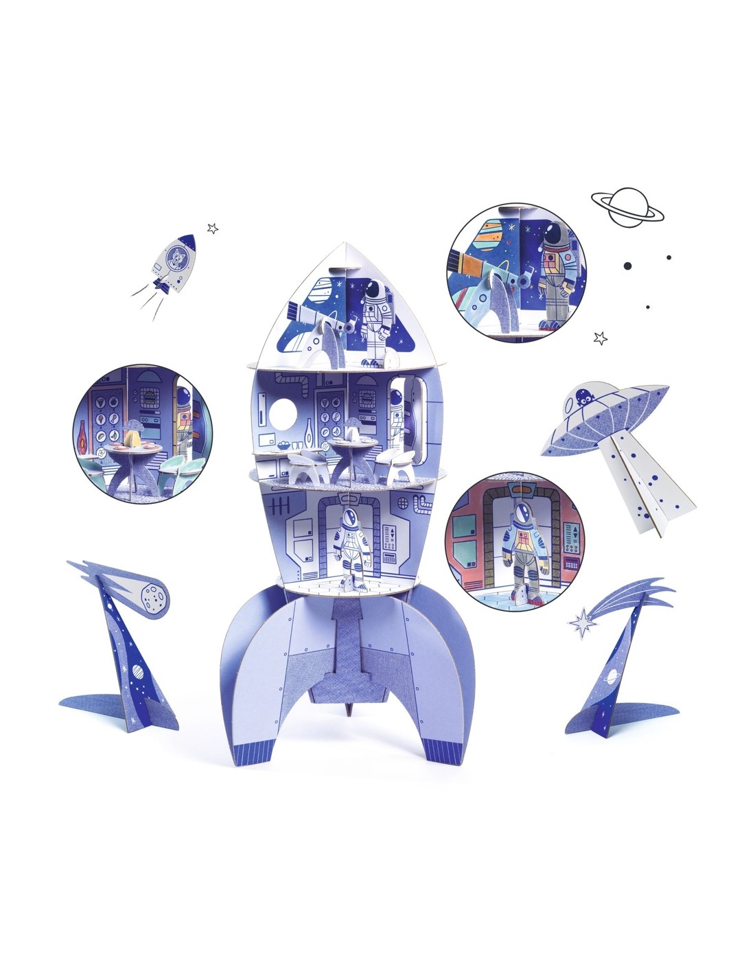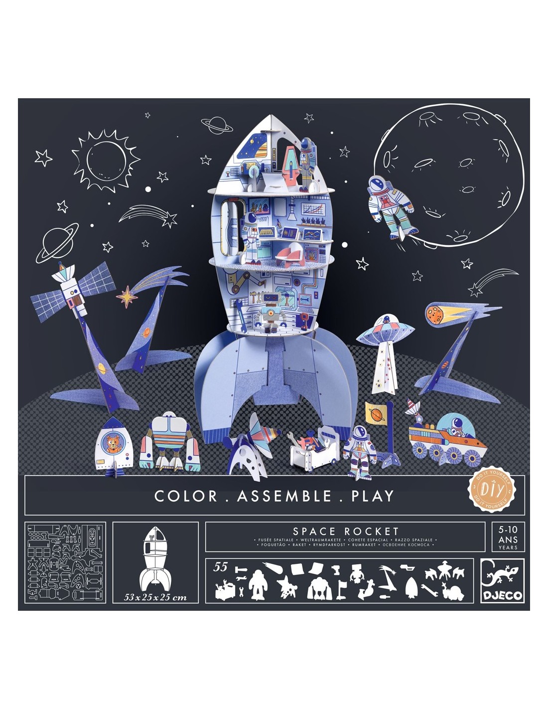 Descobreix l'emoció d'explorar l'espai amb el kit creatiu Pinta i Monta el teu Coet de la reconeguda marca Djeco. Aquest innovador conjunt convida els petits artistes i constructors a personalitzar i construir un coet de tres plantes, complet, amb més de 50 mobles i accessoris, des de robots fins a satèl·lits, que prometen hores d'entreteniment creatiu.