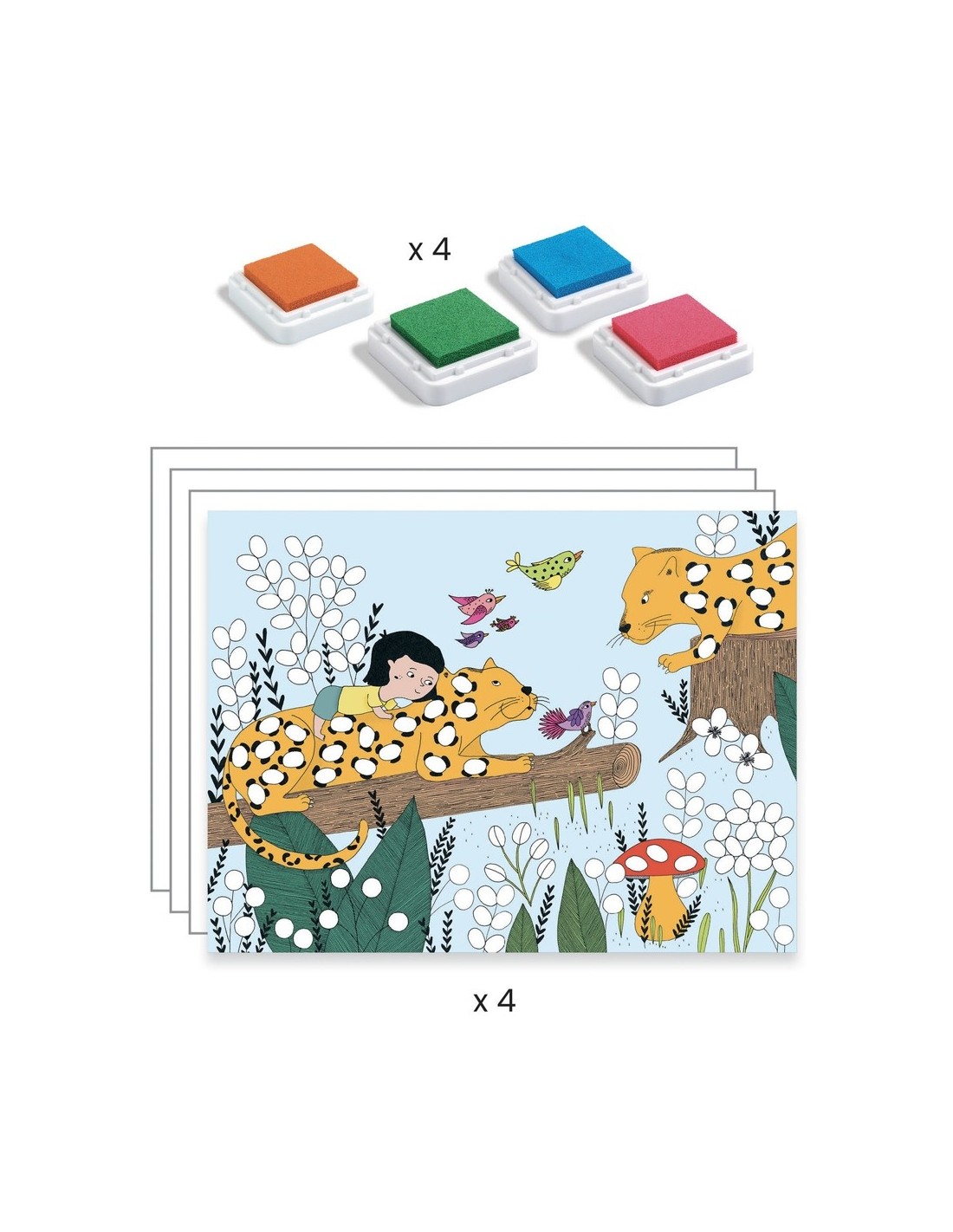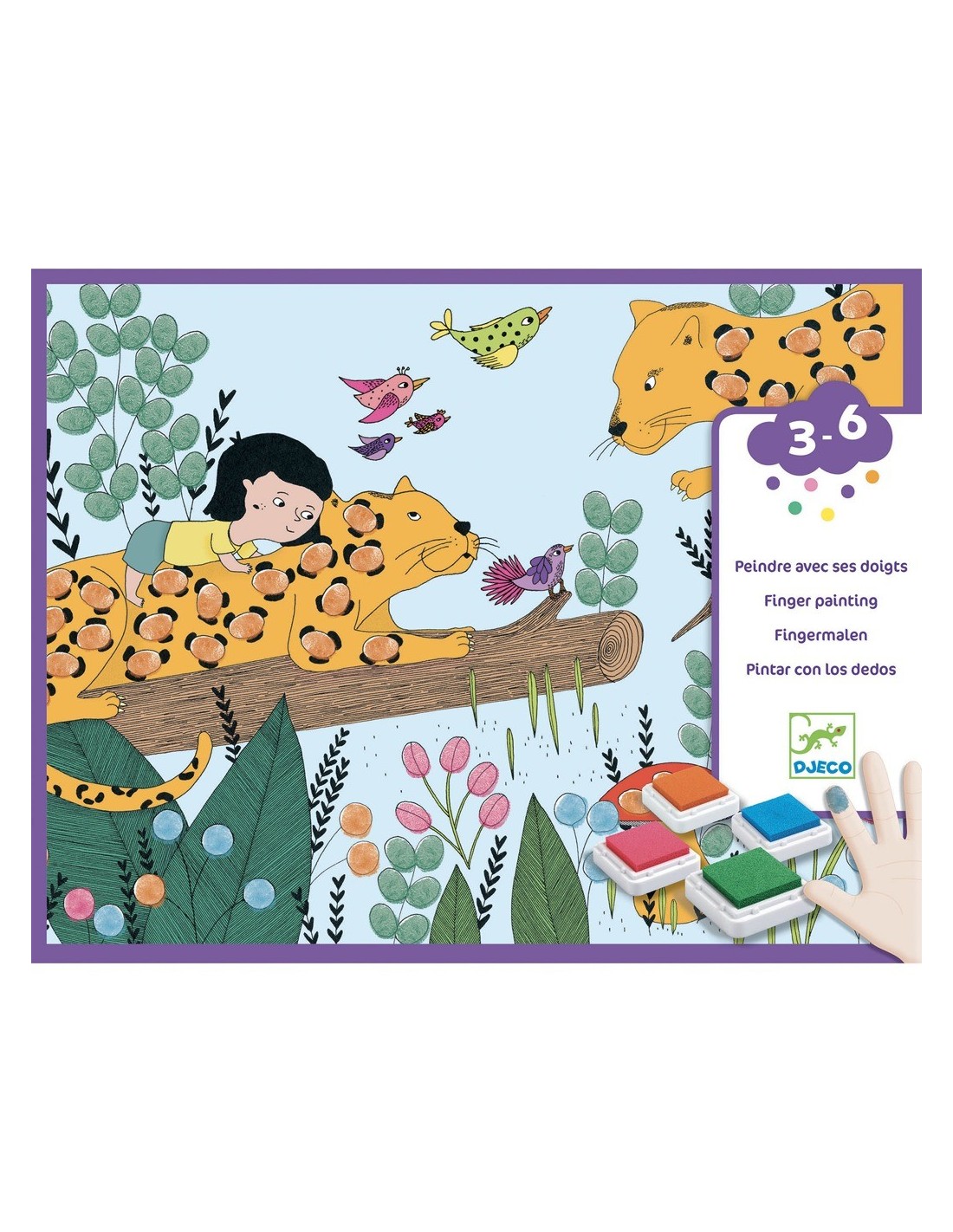 Et presentem aquest joc per a pintar amb els dits de Djeco, una activitat d'art per a nens de 3 a 6 anys amb estampats de colors. Els nens col·loquen els seus dits sobre els coixinets de tinta i després transfereixen el color tocant els elements bàsics de les imatges. Aquesta activitat desenvolupa el tacte i els ensenya als nens a reconèixer els colors. A més, crearan bonics dibuixos que es poden utilitzar com a decoració a les seves habitacions.