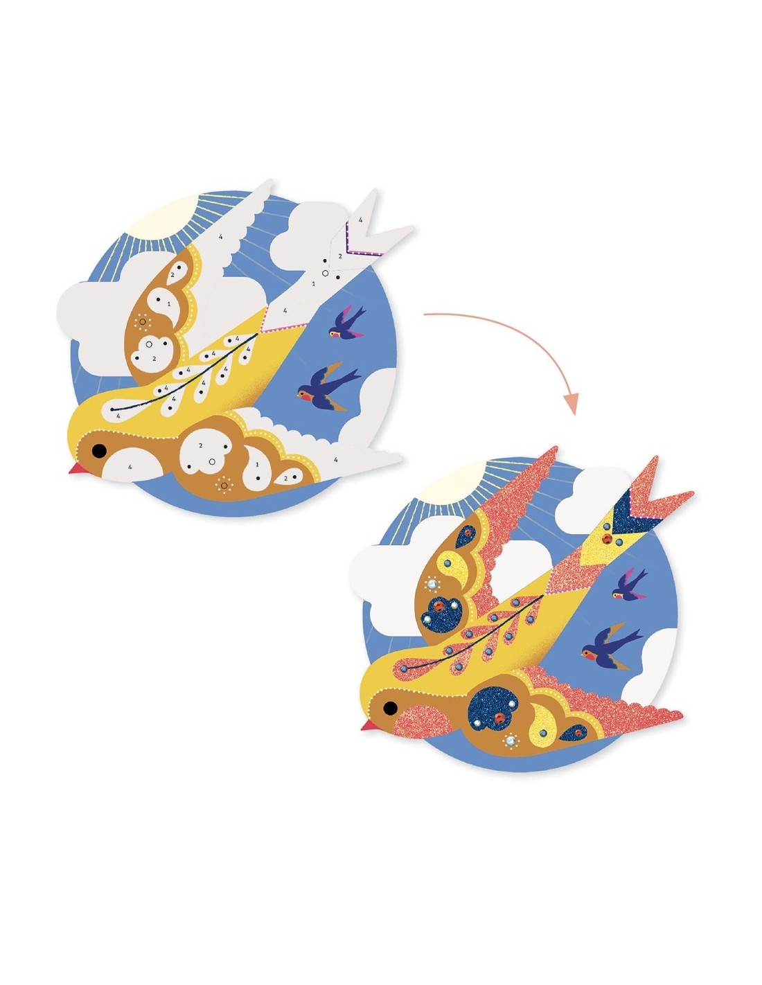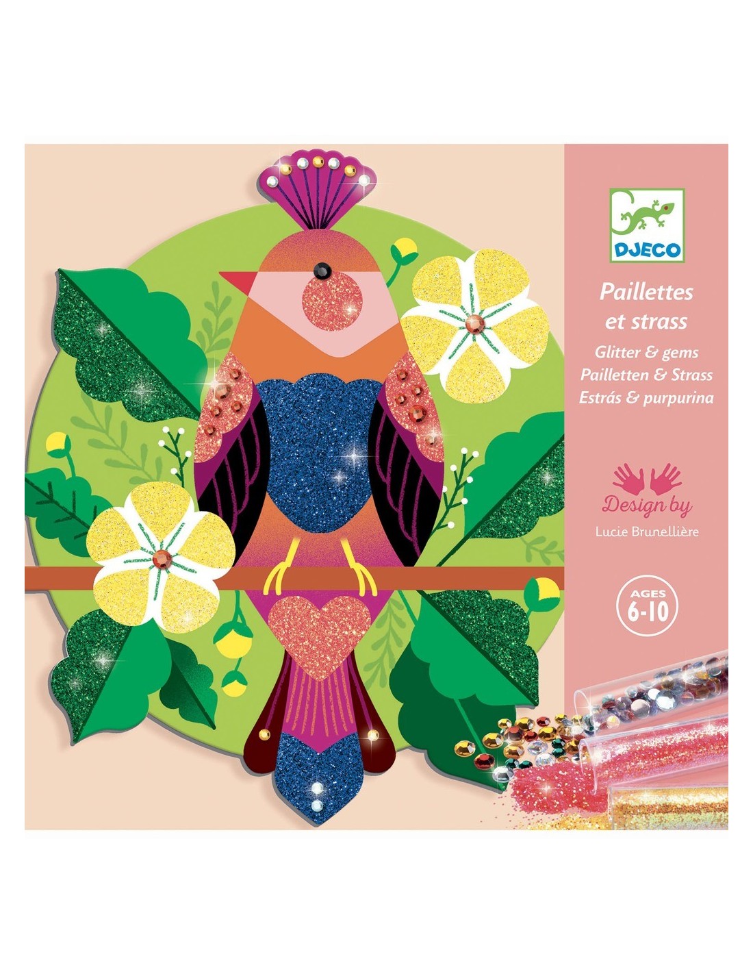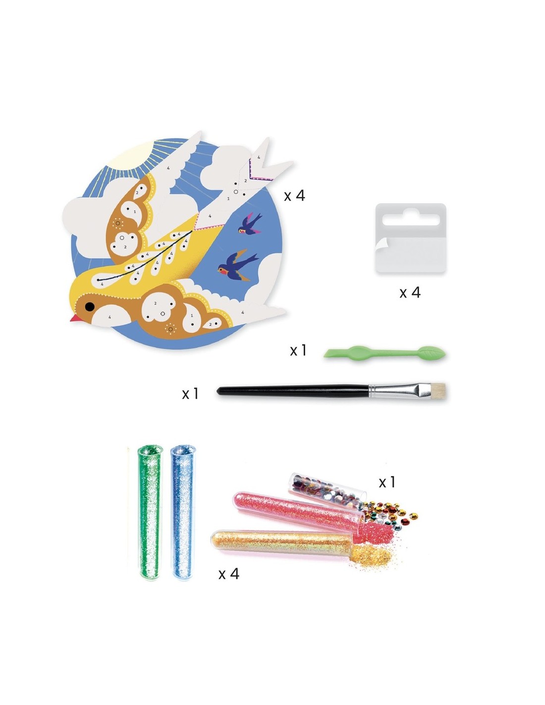 De la mà de Djeco et presentem aquesta manualitat per a pintar amb purpurina amb el disseny Paradís, un joc amb el qual podràs decorar 4 bells quadres amb purpurina i petits lluentons de colors.
