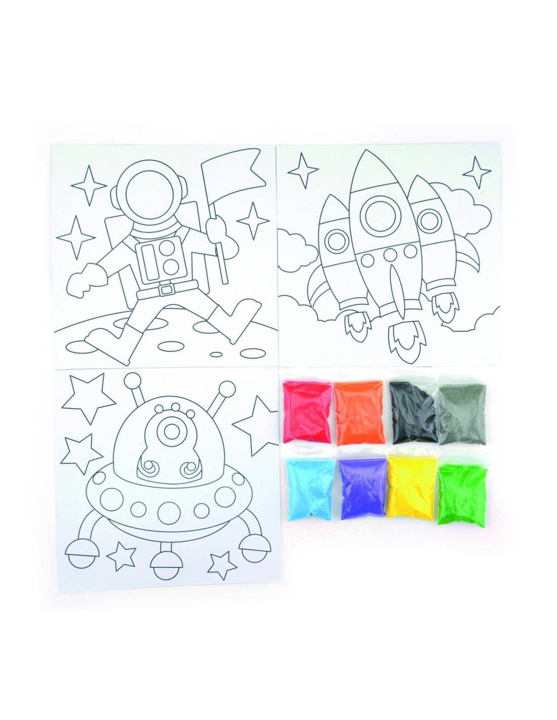 L'activitat de pintar amb sorra de colors ofereix una experiència creativa única per als nens i nenes. Amb el set Space Sand Art d'Andreu Toys, podran donar curs a la seva imaginació i crear belles obres d'art utilitzant sorra de colors. Aquest kit inclou tres plantilles adhesives i vuit sobres de sorra de colors vibrants.