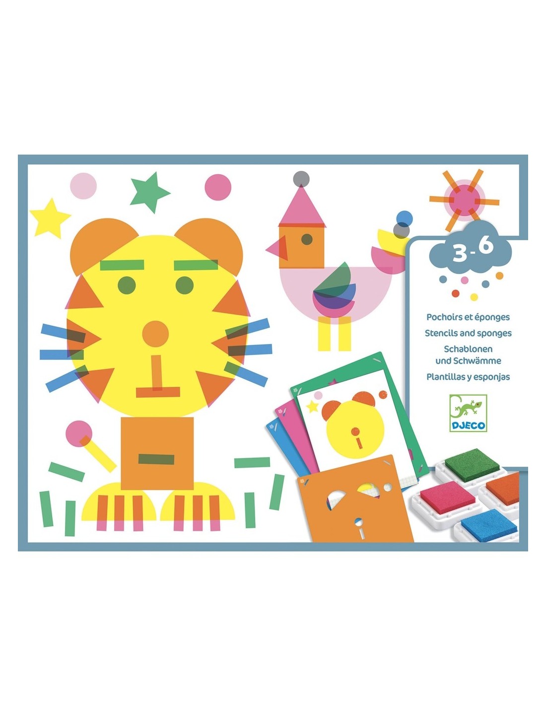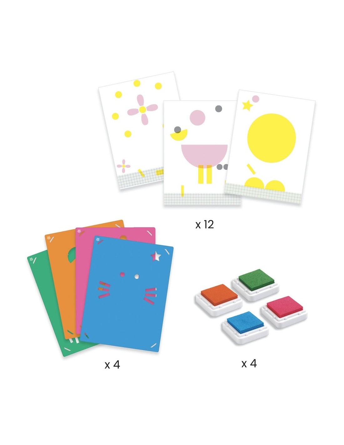 De la mà de la marca francesa us presentem aquesta manualitat infantil de Djeco de pintura amb tampons. Utilitzeu les plantilles i els coixinets de tinta per a crear formes divertides i completar les imatges. Una activitat per a realitzar 4 dissenys utilitzant segells de tinta i plantilles grans. El resultat és impressionant!