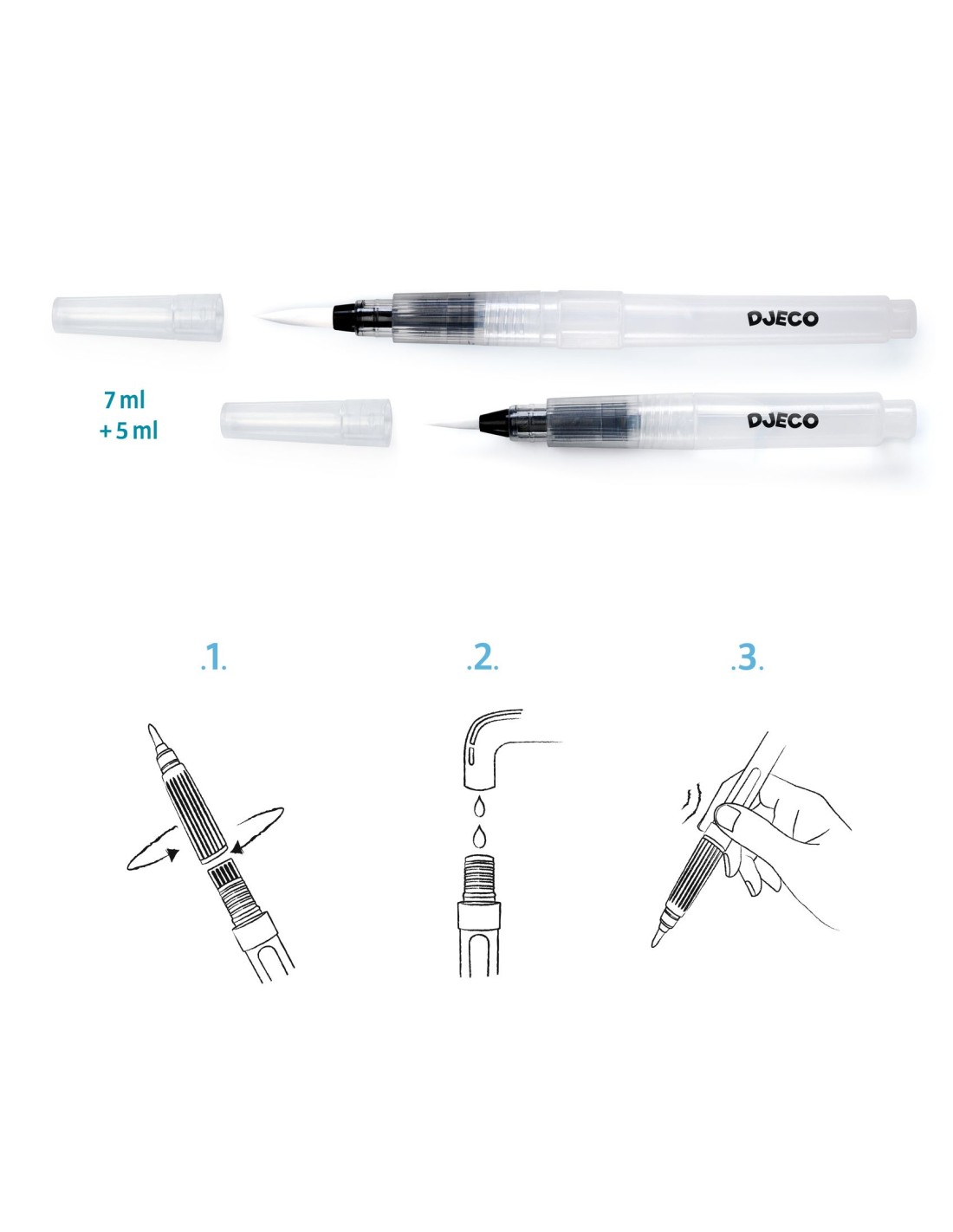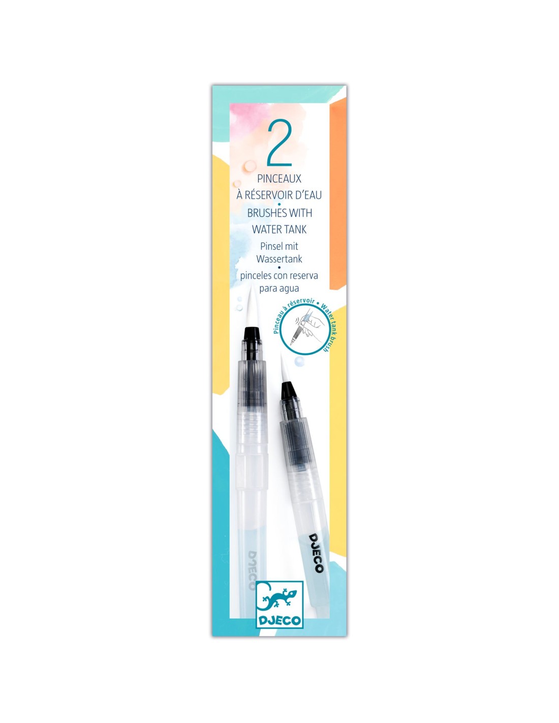 Els Pinzells amb reserva d'aigua de Djeco són una eina ideal per a introduir als nens en la tècnica de l'aquarel·la de manera senzilla i pràctica. Amb aquests pinzells, els petits poden explorar la pintura en un format net i manejable, ja que el seu sistema de dipòsit permet controlar la quantitat d'aigua alliberada, fent que l'experiència artística sigui molt més còmoda i adequada per a nens de diferents edats.