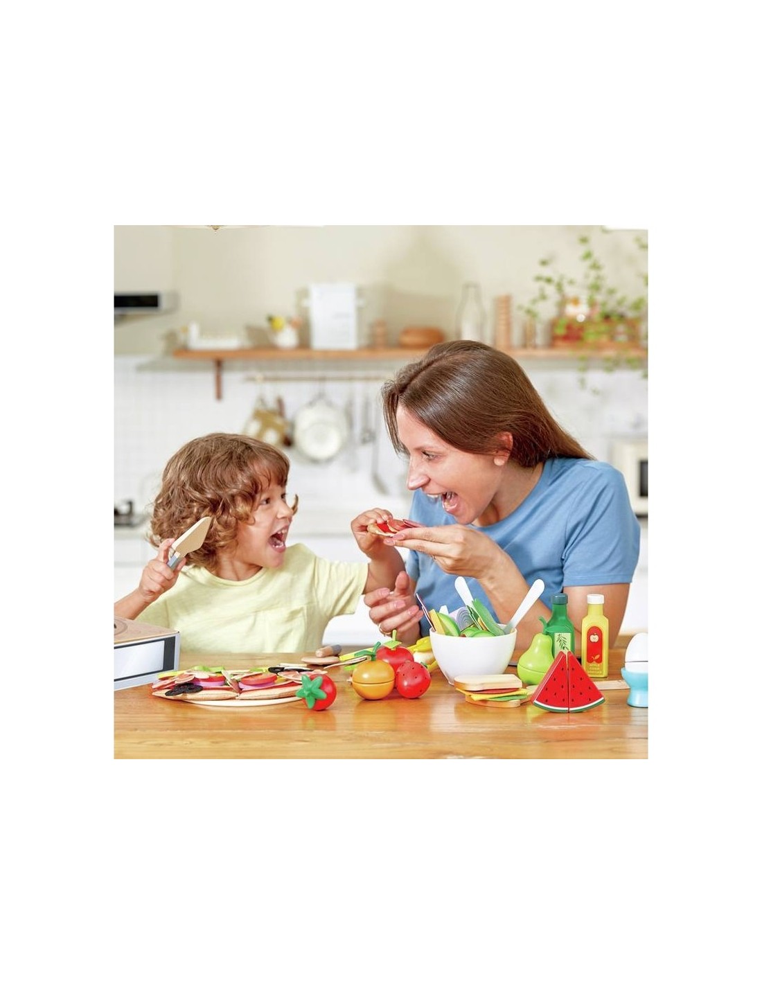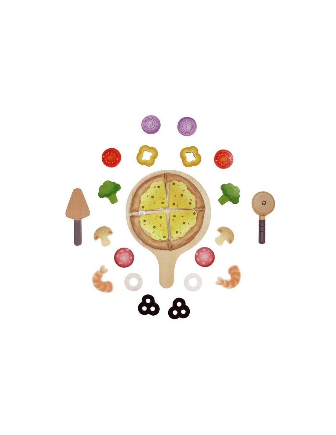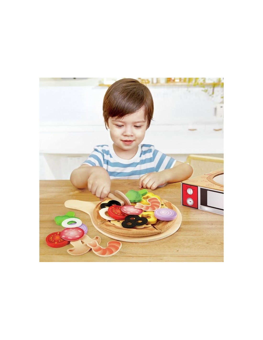 Prova la cuina italiana amb aquest acolorit joc de pizza amb ingredients de joguina! Inclou una base de pizza que pot tallar-se en porcions, un servidor de pizza, un tallador, gambes, verdures i altres ingredients, fins i tot un forn que també serveix com a caixa de la pizza.