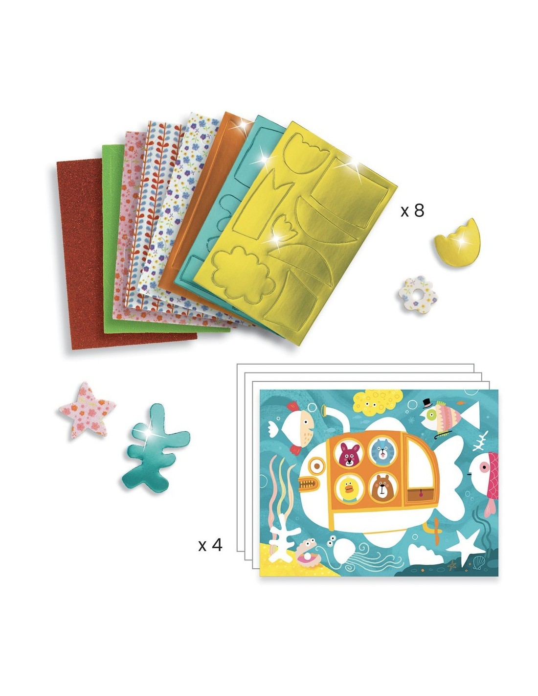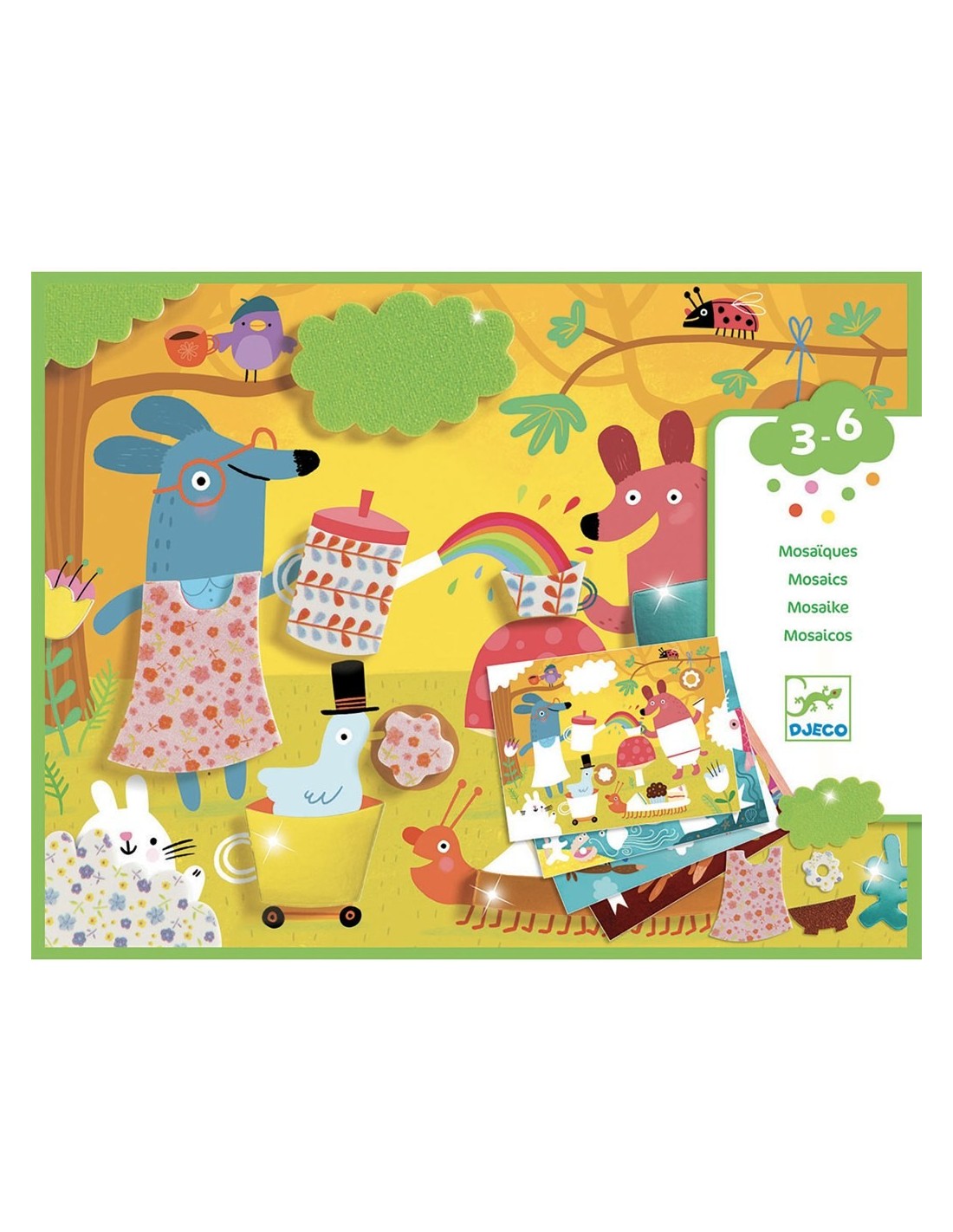 Djeco ens sorprèn una vegada més amb una joguina ideal per als més artistes de la casa. Amb Primeres Manualitats, Crear Mosaics, els petits de la casa podran crear mosaics Aquest Kit de Primeres Manualitats Crear Mosaics inclou tots els materials necessaris per a realitzar aquestes obres d'arts amb animals i crear escenes plenes de tendresa: 4 fulls d'il·lustracions per a emplenar, 6 fulls de paper gruixut de colors, 4 fulls d'adhesius, 1 full d'adhesius de doble cara i un manual d'imatges.