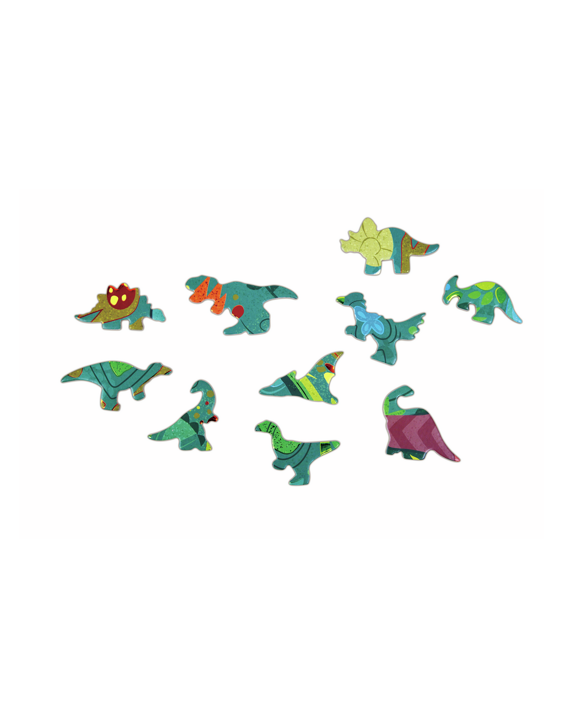 Les peces estan fabricades en cartó gruixut d'alta qualitat, pensat per a suportar un ús intensiu sense deformar-se, de manera que els nens puguin muntar i desmuntar el trencaclosques una vegada i una altra. El seu disseny combina peces clàssiques amb altres amb formes de dinosaures, la qual cosa converteix el muntatge en una activitat molt més variada i estimulant. Aquesta mescla ajuda a reforçar la percepció visual, millora la motricitat fina i potència la resolució de problemes d'una manera totalment natural.