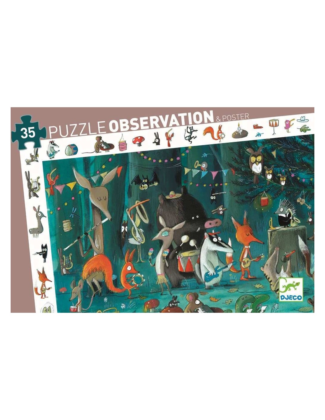 Presentem el trencaclosques d'observació "L'Orquestra" de Djeco, un trencaclosques de 35 peces ideal per a nens i nenes a partir de 3 anys. A més de ser un puzle, "L'Orquestra" inclou un divertit exercici d'observació que ajudarà al seu fill a augmentar la concentració i l'atenció al detall mentre es diverteix. Després d'encaixar totes les peces, l'objectiu és trobar els elements que apareixen en el marc i que estan amagats en la imatge principal. Una activitat divertida i educativa per realitzar al costat dels més petits. La imatge final és una il·lustració molt cuidada en els detalls que mostra una divertida orquestra d'animals plens d'expressivitat.