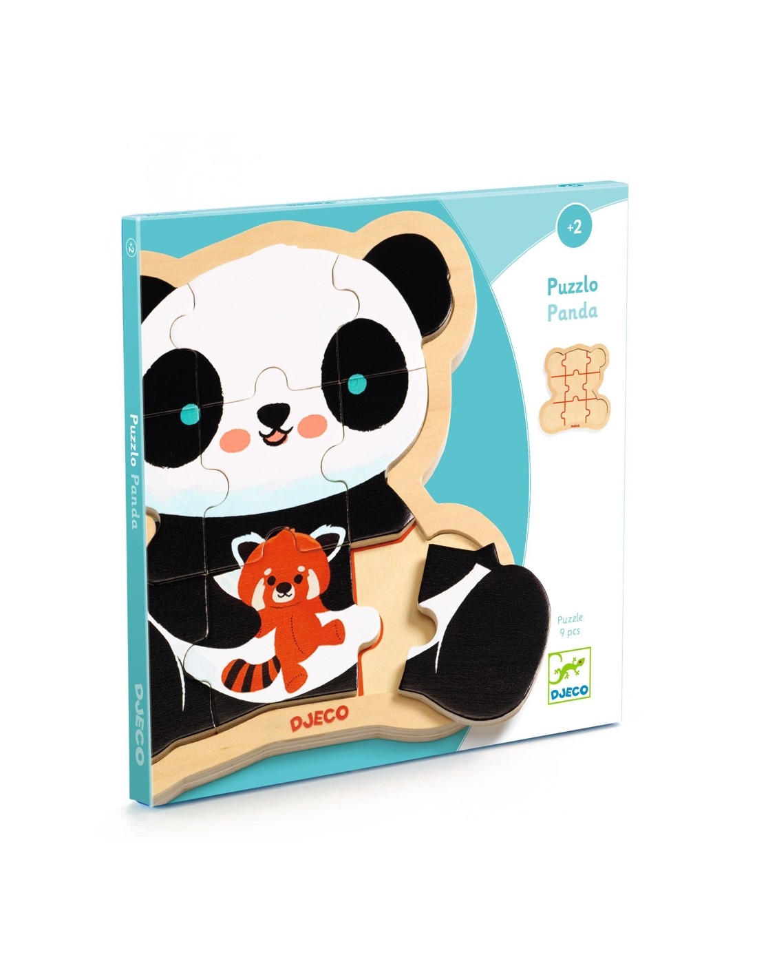 El Puzzlo Panda consta de 9 peces de fusta que s'acoblen sobre una base sòlida. El que fa que aquest puzle sigui especial és que la base té marcada la silueta de cada peça, cosa que facilita el reconeixement i la col·locació adequada per als nens. Aquest disseny intuïtiu fomenta la resolució de problemes i el desenvolupament d'habilitats de coordinació mà-ull mentre els nens treballen per completar la imatge del panda.