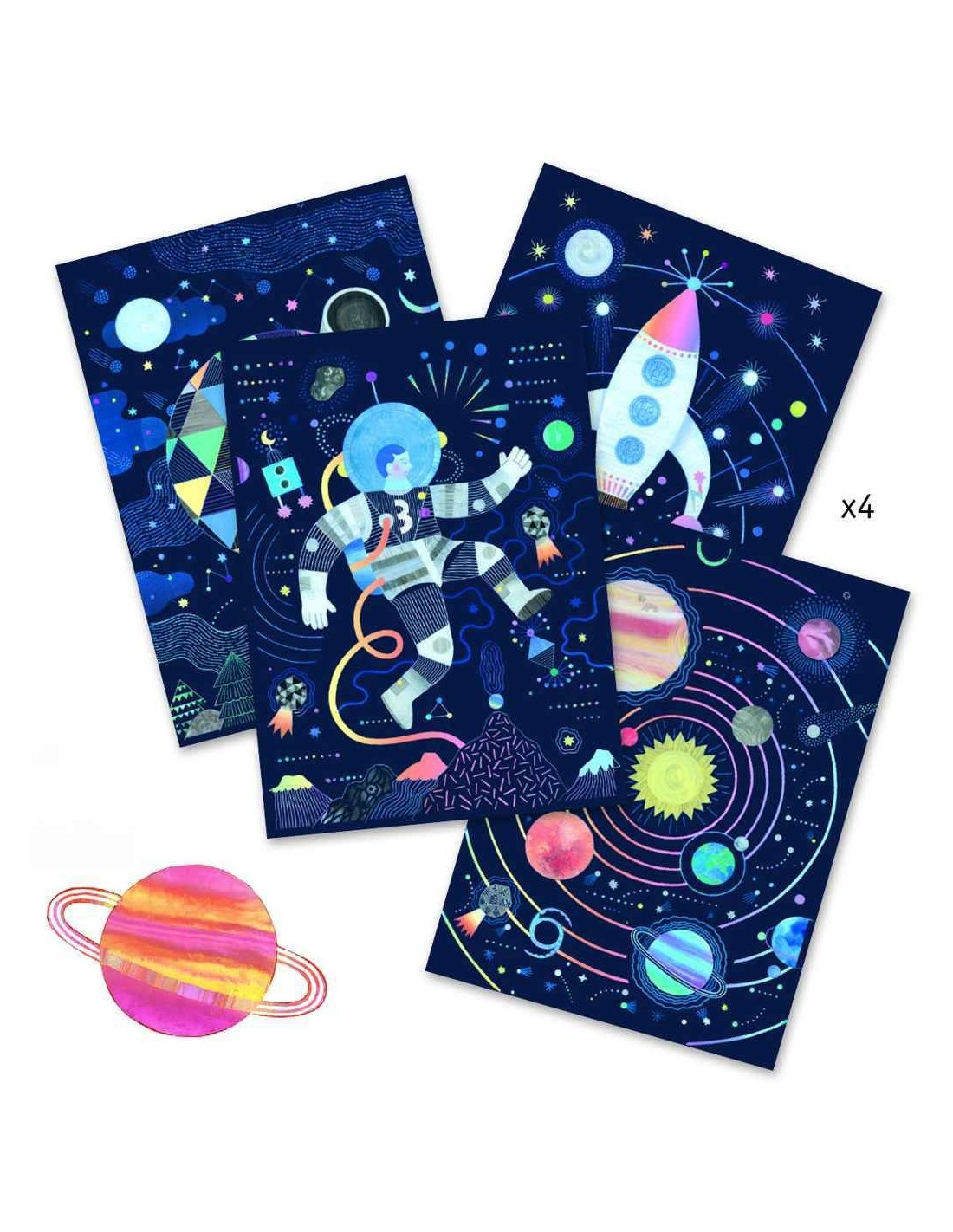 Descobreix els quadres per rascar de Djeco. Un passatemps creatiu i original pensat per a nens i nenes a partir de 7 anys. En aquesta edició especial de Missió Cosmos els més petits podran rascar sobre les diferents zones de la làmina i descobrir així fantàstics dissenys de l’espai exterior. El procés ve clarament detallat en el fulletó d'instruccions i la caixa inclou 4 targetes per raspar i un llapis de fusta. Una activitat creativa i divertida per als nens.