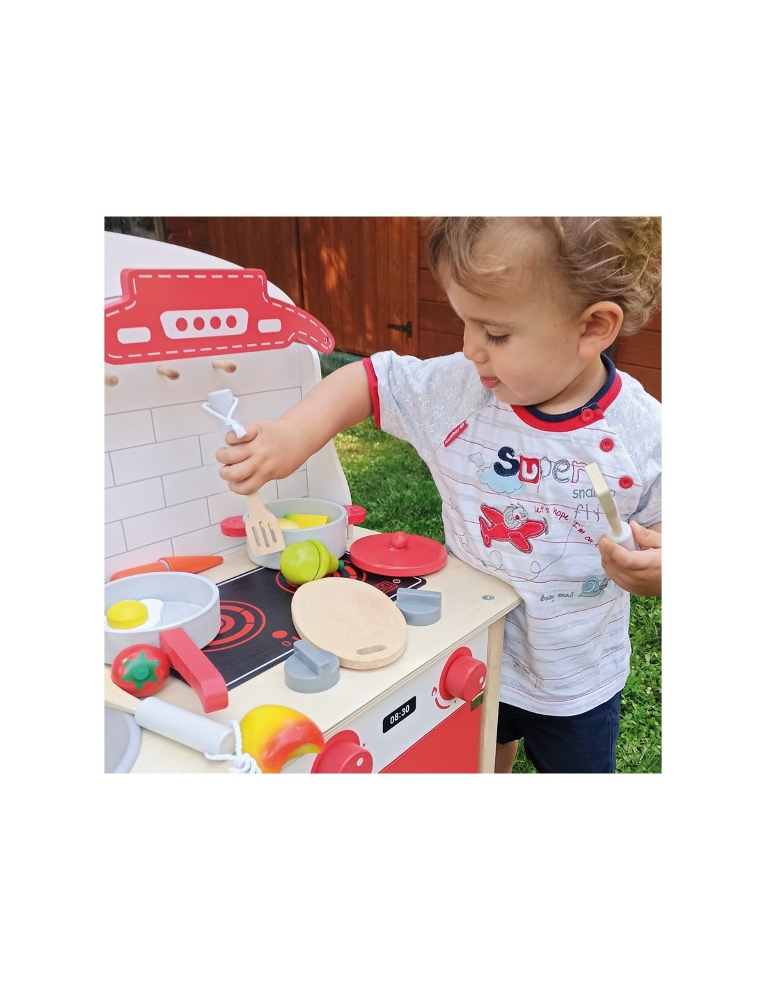 Et presentem Red Kitchen d'Andreu Toys, una fantàstica cuina de joguina feta de fusta i amb un disseny vermell precís i modern. A més, inclou els accessoris bàsics per a poder jugar a les cuinetes. És ideal! Els botons de la cuina emeten so de clic per a més realisme i, a més, compta amb un gran espai d'emmagatzematge sota l'aigüera, que a la seva mateixa vegada és extraïble per a una fàcil neteja.