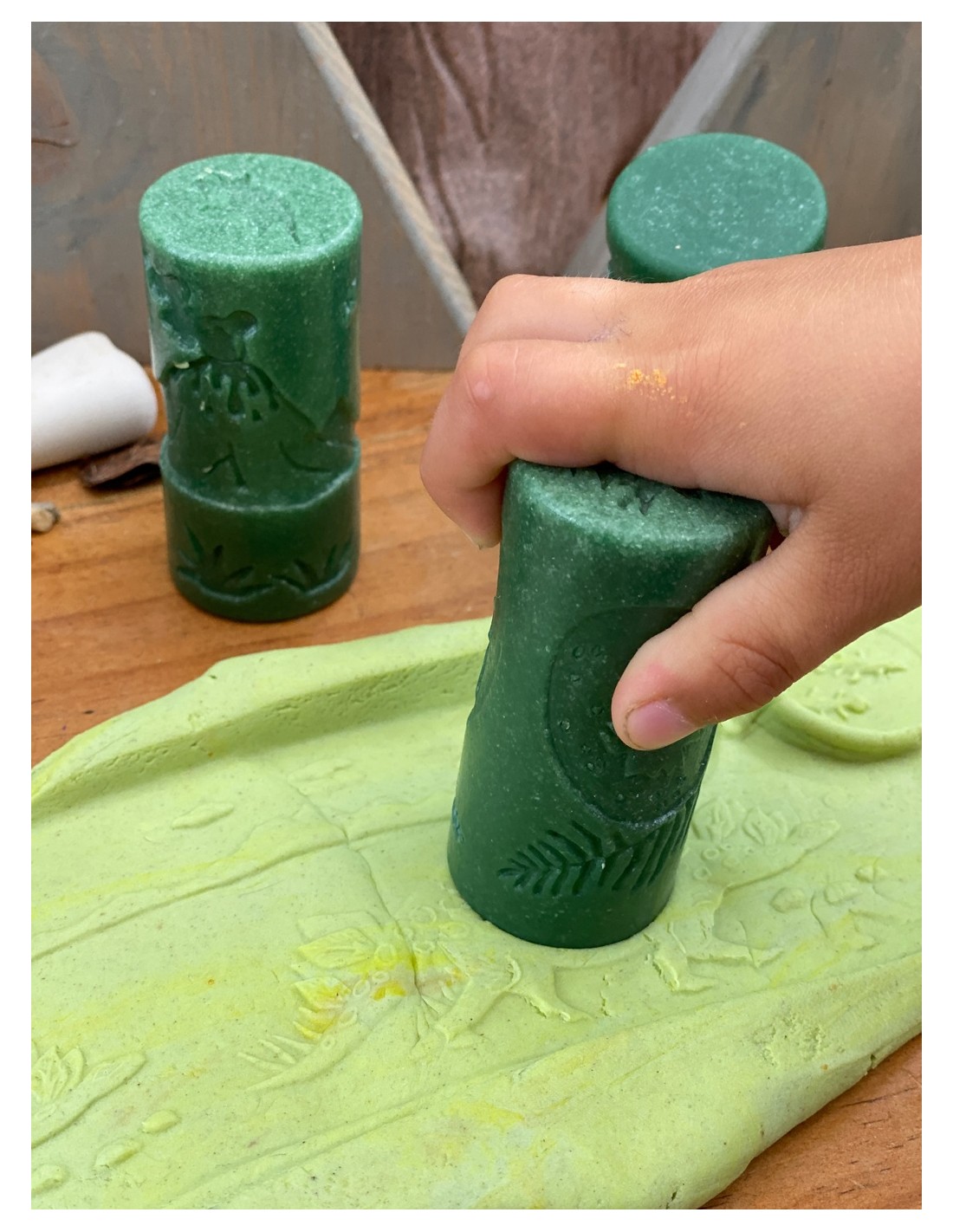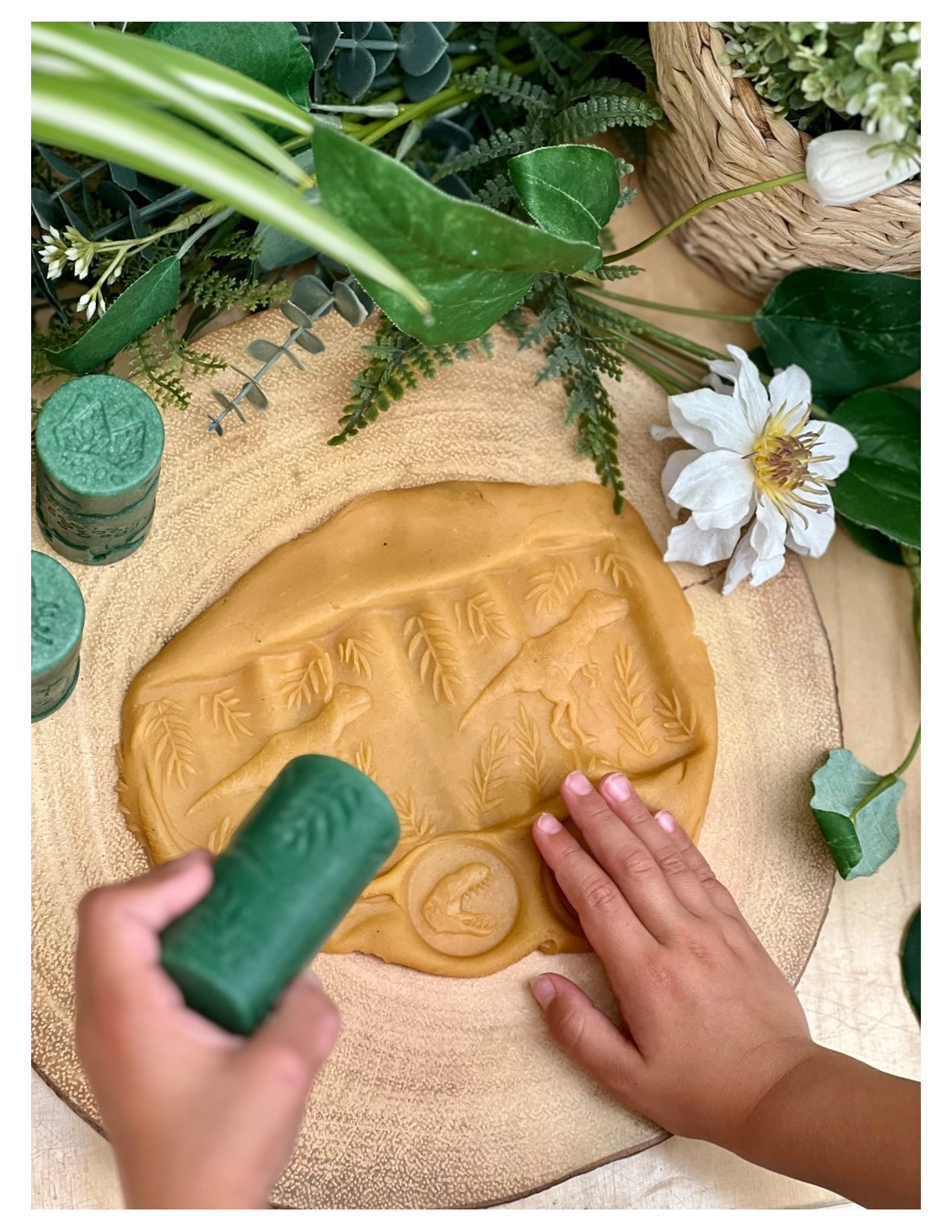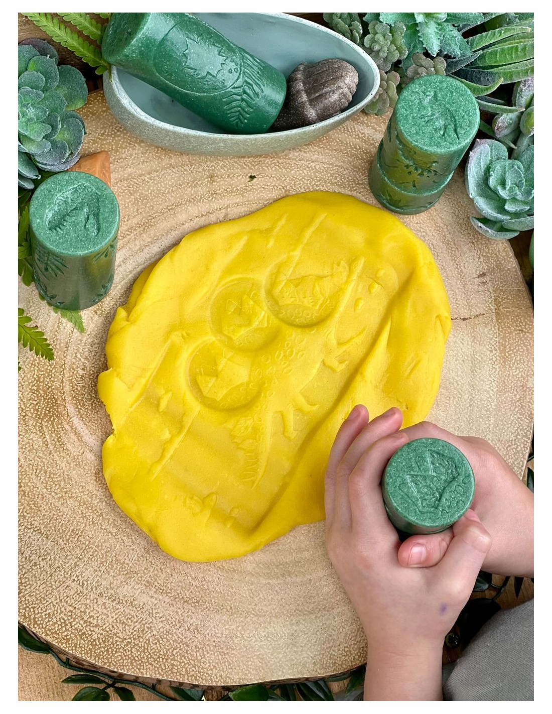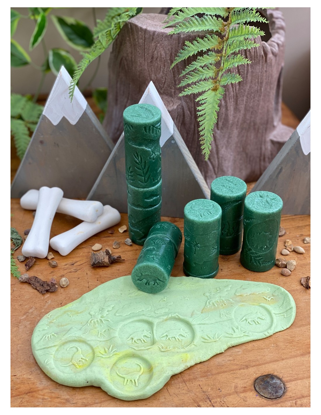 Els Rodets de textures del món dels Dinosaures són l'eina perfecta perquè els nens viatgin al passat i creuen les seves pròpies escenes juràsiques. Amb ells, podran estampar i rodar sobre plastilina, argila o sorra, descobrint els fascinants detalls d'aquests gegants prehistòrics i els seus hàbitats.
