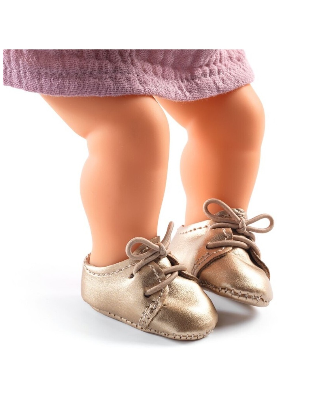 Les Sabates daurades per a nines Poméa de Djeco són un complement encantador pensat per a aportar un toc de lluentor i elegància a qualsevol nina de la col·lecció. Es tracta d'un parell de sabatetes brillants, dissenyats amb un acabat daurat lluminós que crida l'atenció sense resultar excessiu, perfectes per a completar conjunts especials o per a donar un aire festiu als looks més senzills. El seu disseny cuidat i la seva grandària, adequat per a nines d'entre 32 i 34 cm, permeten que els nens i nenes puguin posar-los i llevar-los amb facilitat, afavorint així el joc autònom i estimulant la motricitat fina mentre manipulen els cordons decoratius.