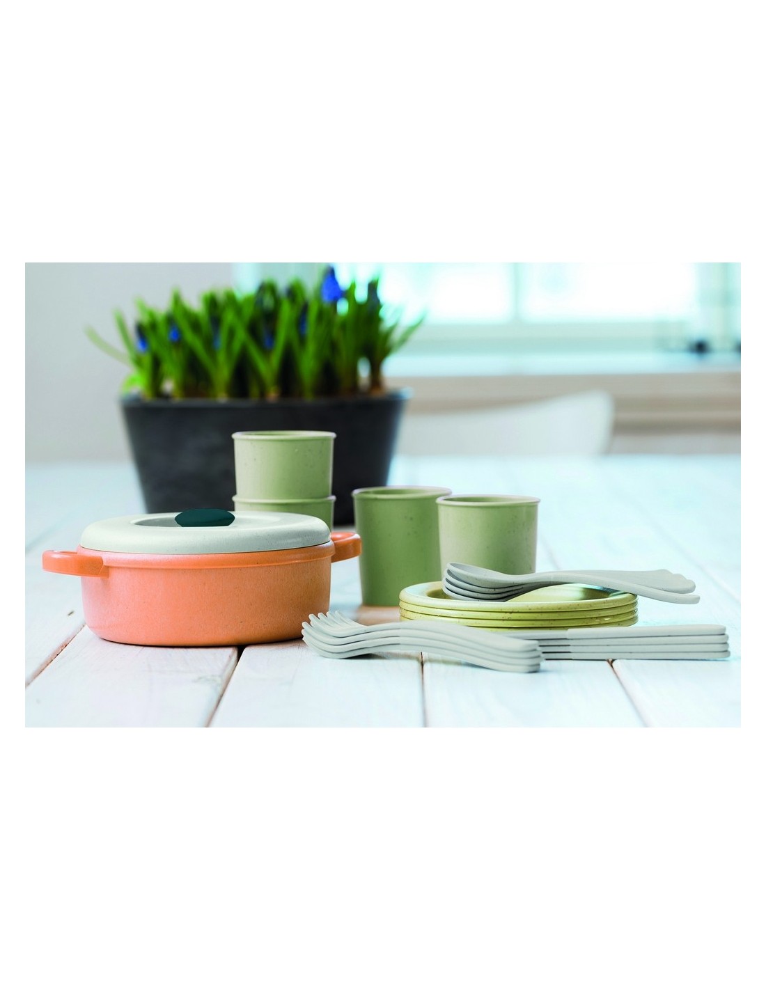 Aquest set de cuina de joguina feta de canya de sucre de Dantoy no tan sols serà ideal perquè els nens juguin i s'ho passin pipa amb els seus amics, sinó que també estaran conscienciant-se sobre la importància de la cura del medi ambient i del món que els envolta i en el qual s'ho passen tan bé jugant amb els seus amiguets.