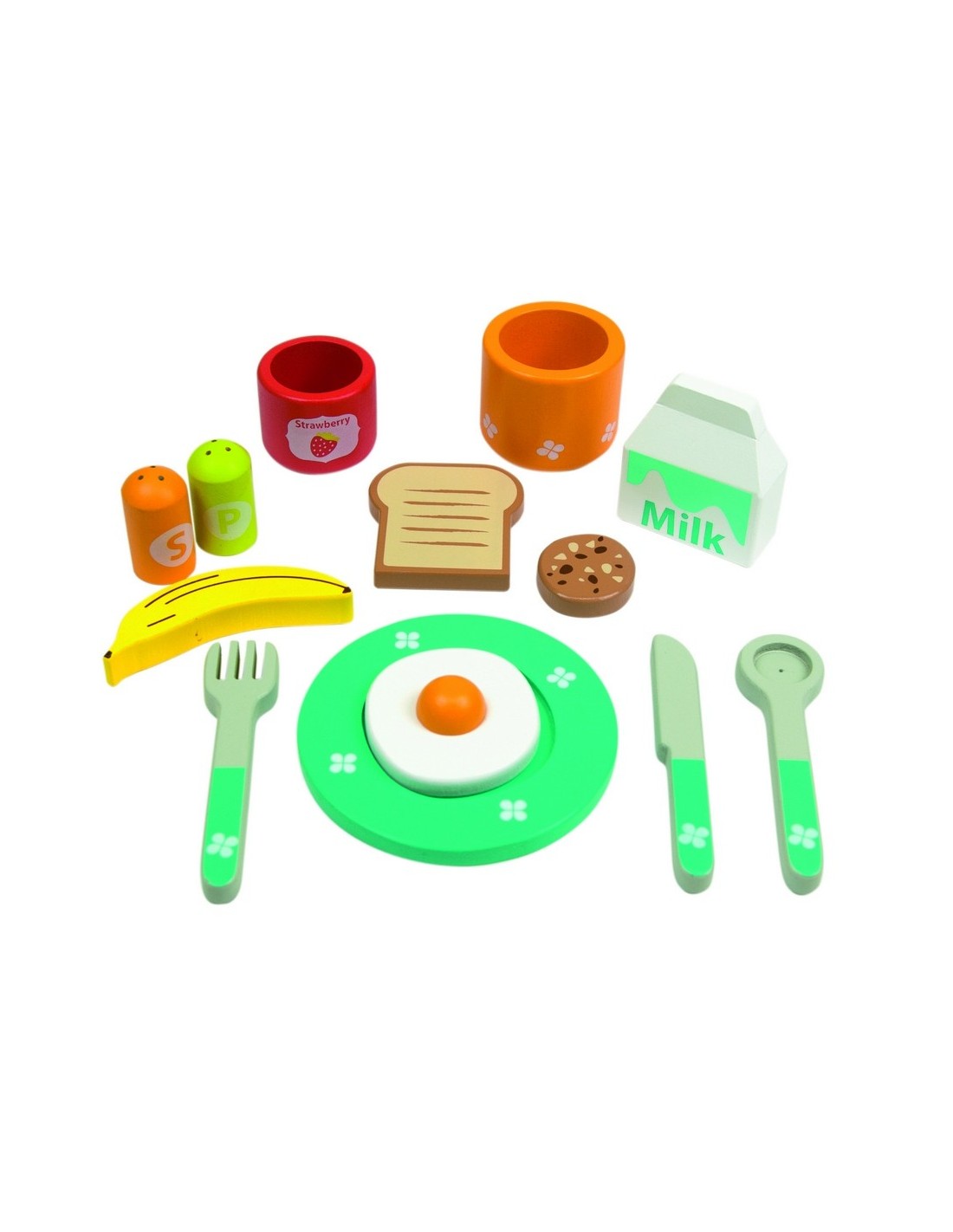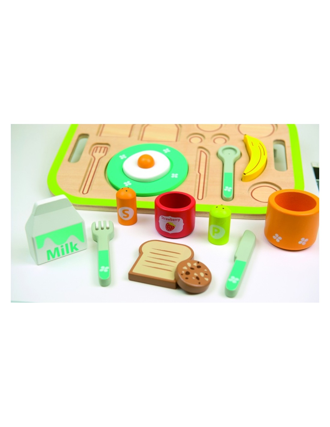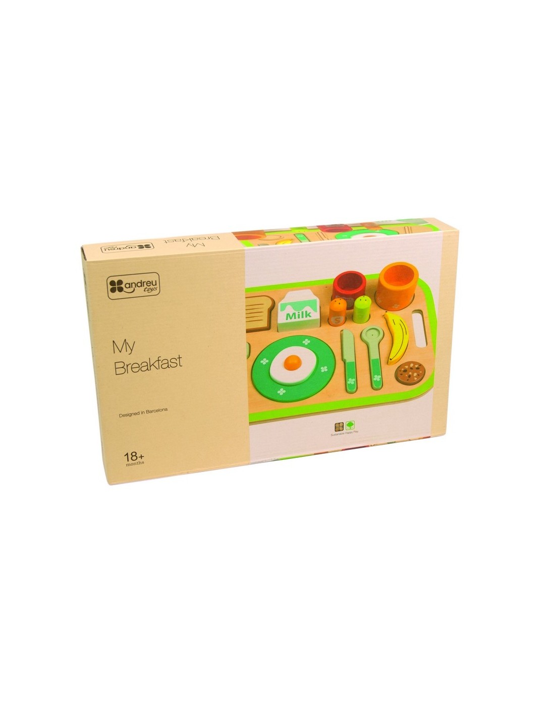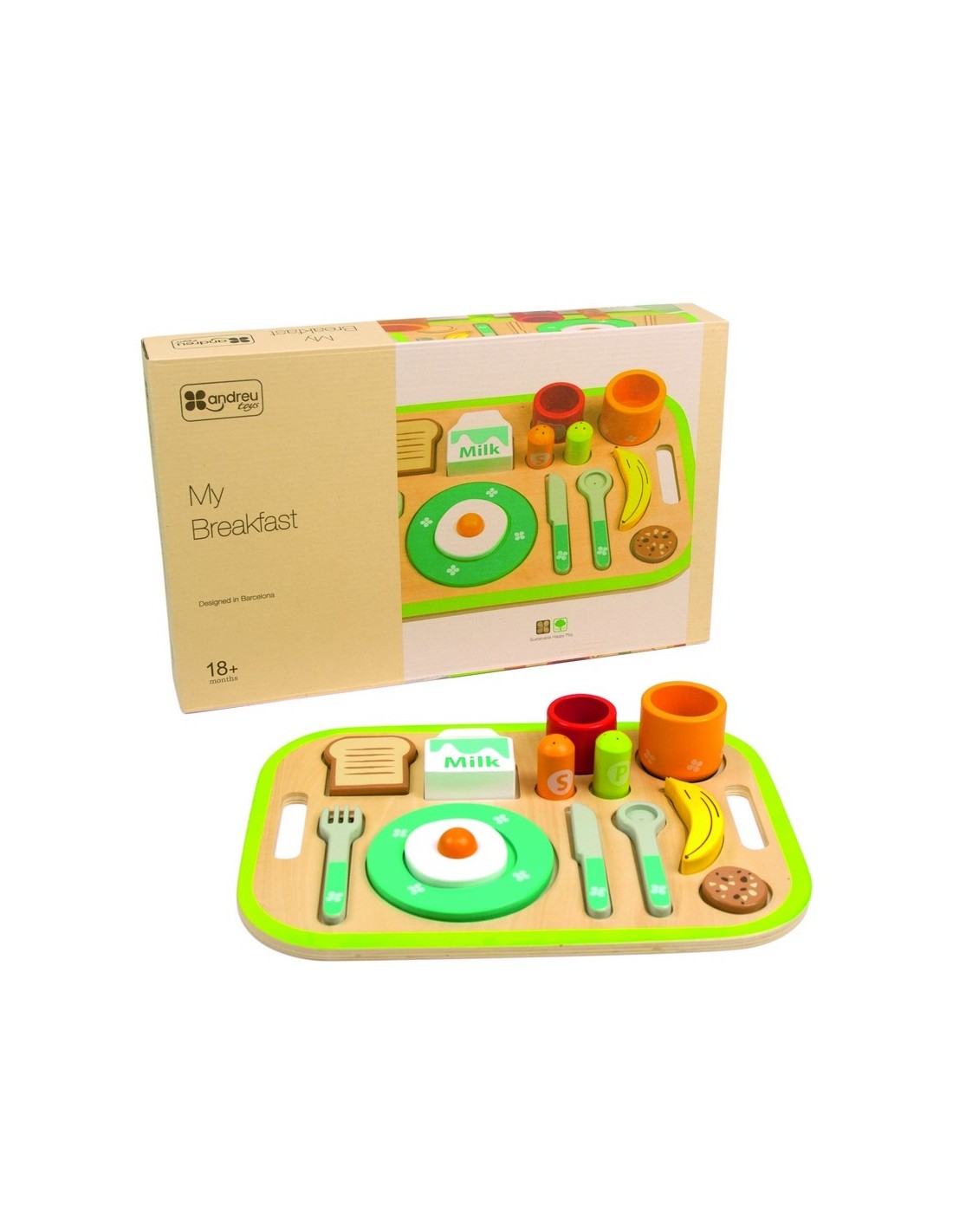Tots a taula que l'esmorzar ja està preparat! És l'àpat més important del dia, així que l'hem de tenir en compte. És per això que Andreu Toys ens presenta aquest fantàstic Set d'Esmorzar de Joguina. En aquest pack hi trobaràs els aliments típics d'un bon esmorzar: cookies, llet, torrada, ou fregit... A part, trobaràs un plat, els coberts, els vasos i fins hi tot una fantàstica safata on podràs posar tot el material i quedarà ben encaixat. Tots els materials estan fets de fusta, així que serà un gust jugar amb aquest fabulós joc. Acabats perfectes i un disseny preciós. Què més es pot demanar?