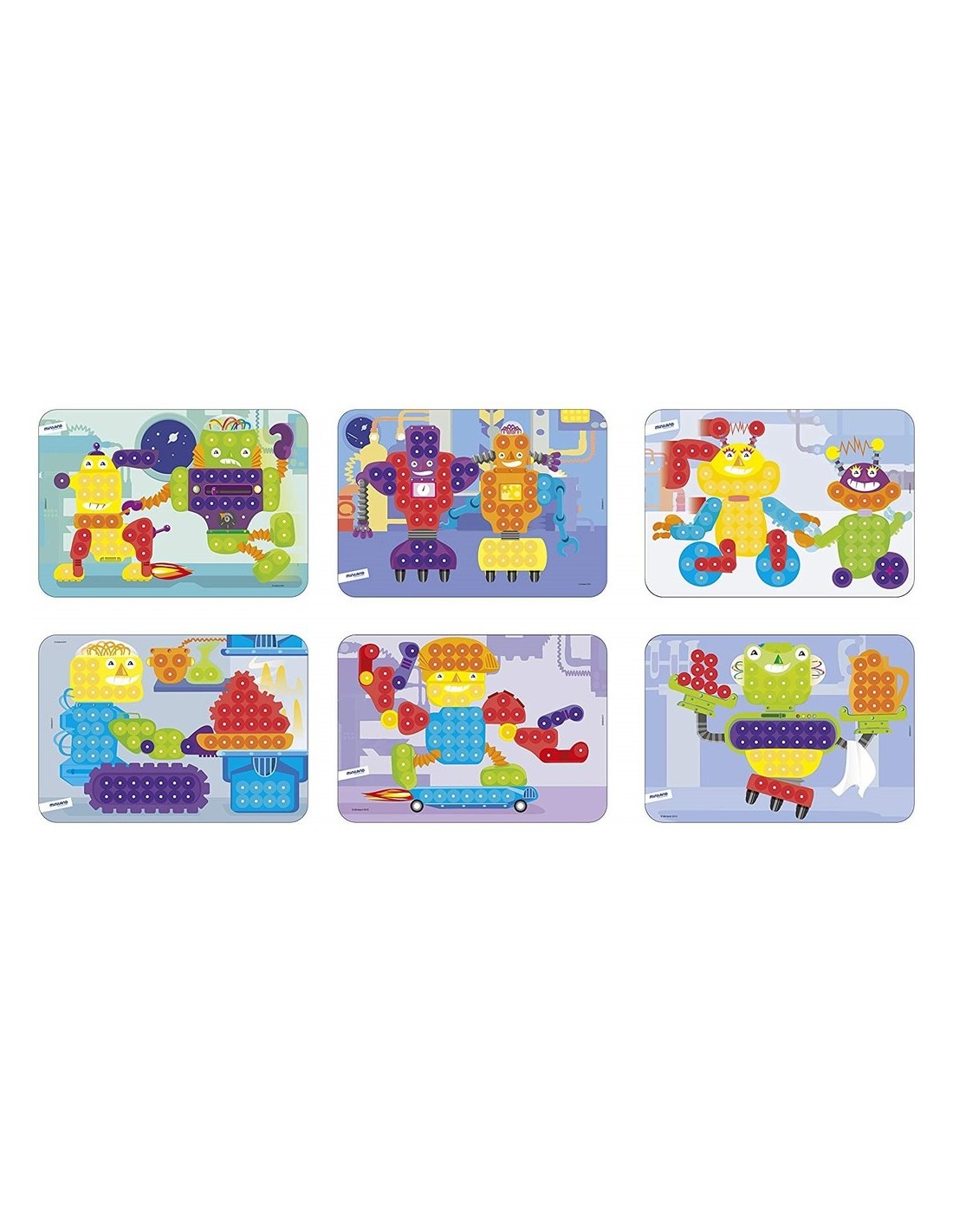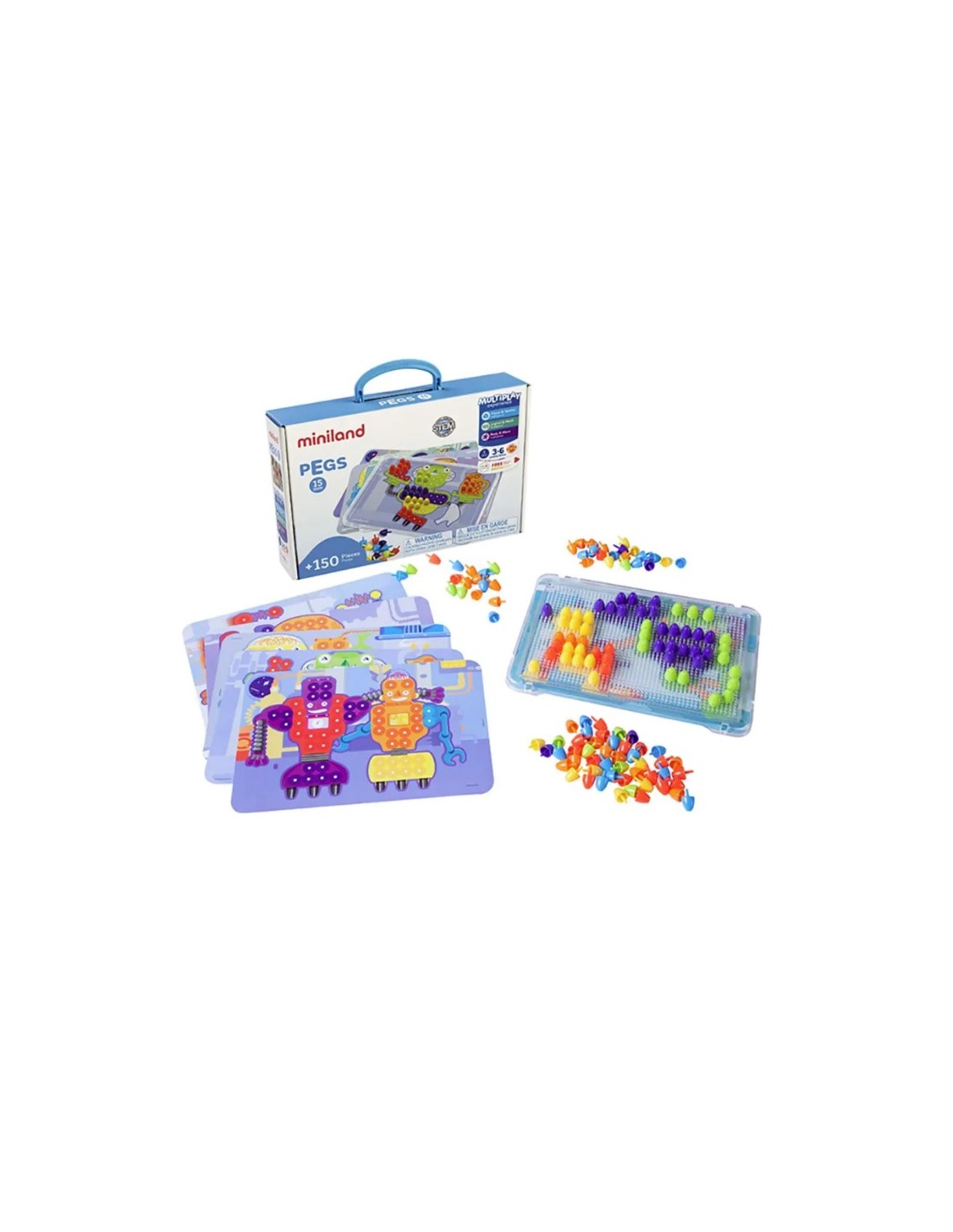 La marca de joguines Miniland ens porta la seva nova versió del clàssic i entretingut joc dels mosaics. Aquest kit conté tot el necessari perquè els més petits puguin compondre diferents imatges multicolor introduint les punxes en els foradets de la safata. El set inclou 1 safata perforada, 6 plantilles de joc i 150 pius de 15 mm. Es poden descarregar noves il·lustracions des Playminiland.com