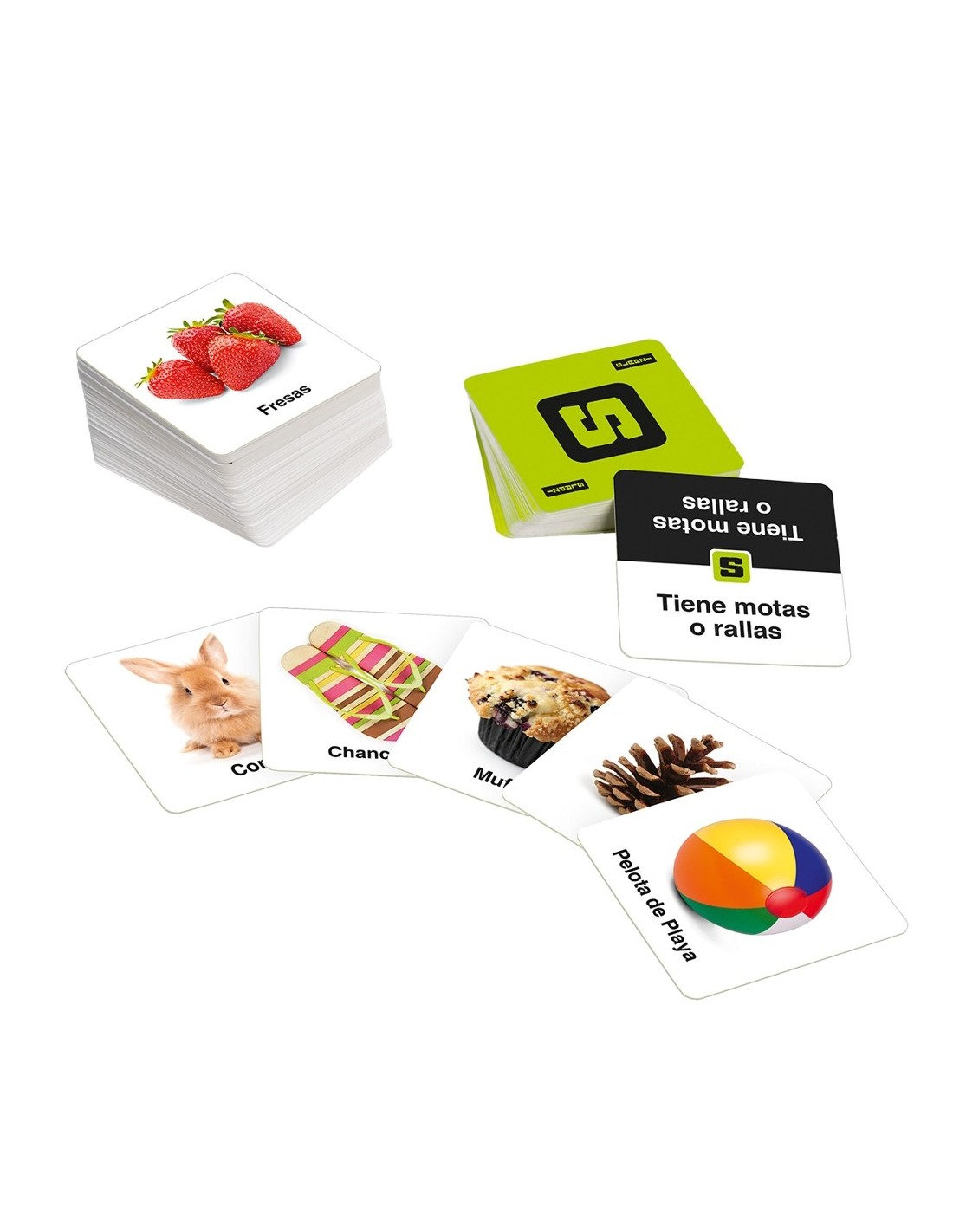 Slapzi de Lúdilo conté 120 cartes d'imatge a doble cara, 65 cartes de pista i les regles de joc perquè pugueu revisar-les sempre que vulgueu.
