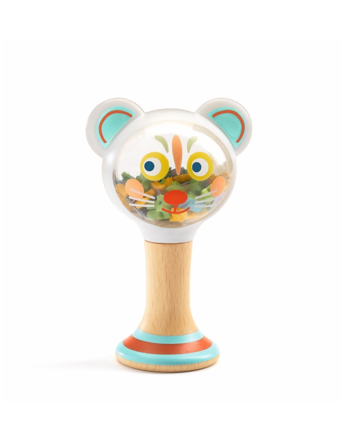 Et presentem el sonall Baby Maraki de Djeco, amb forma d'un ós adorable i ple de boletes que faran un dolç so en sacsejar-lo.