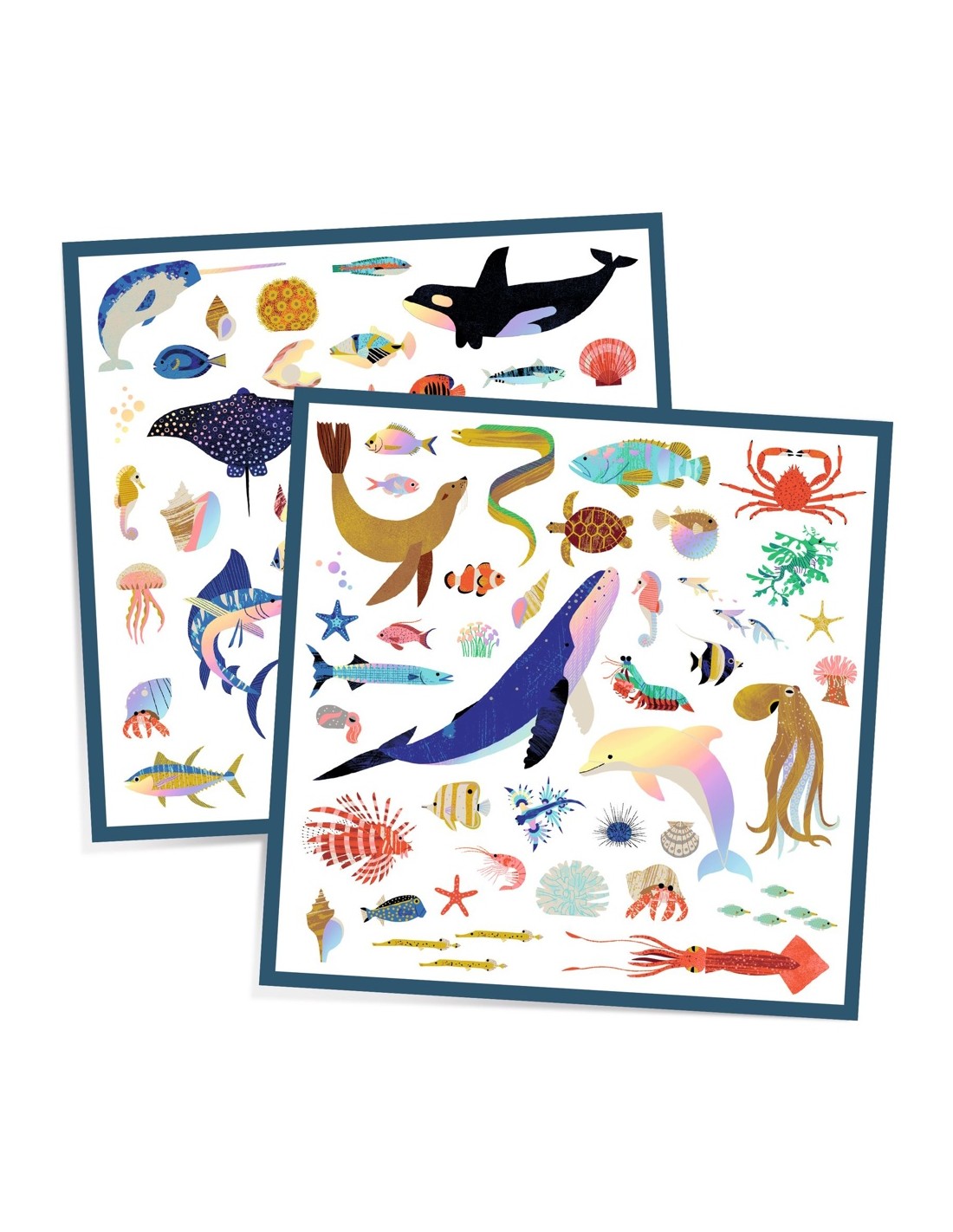 Explora el misteriós món marí i deixa que la teva creativitat flueixi amb els Stickers Metal·litzats Oceà de Djeco. Submergeix-te en la diversió artística mentre descobreixes la riquesa i la varietat de la vida marina a través d'aquests encantadors adhesius que transformaran cada projecte en una obra mestra submarina.