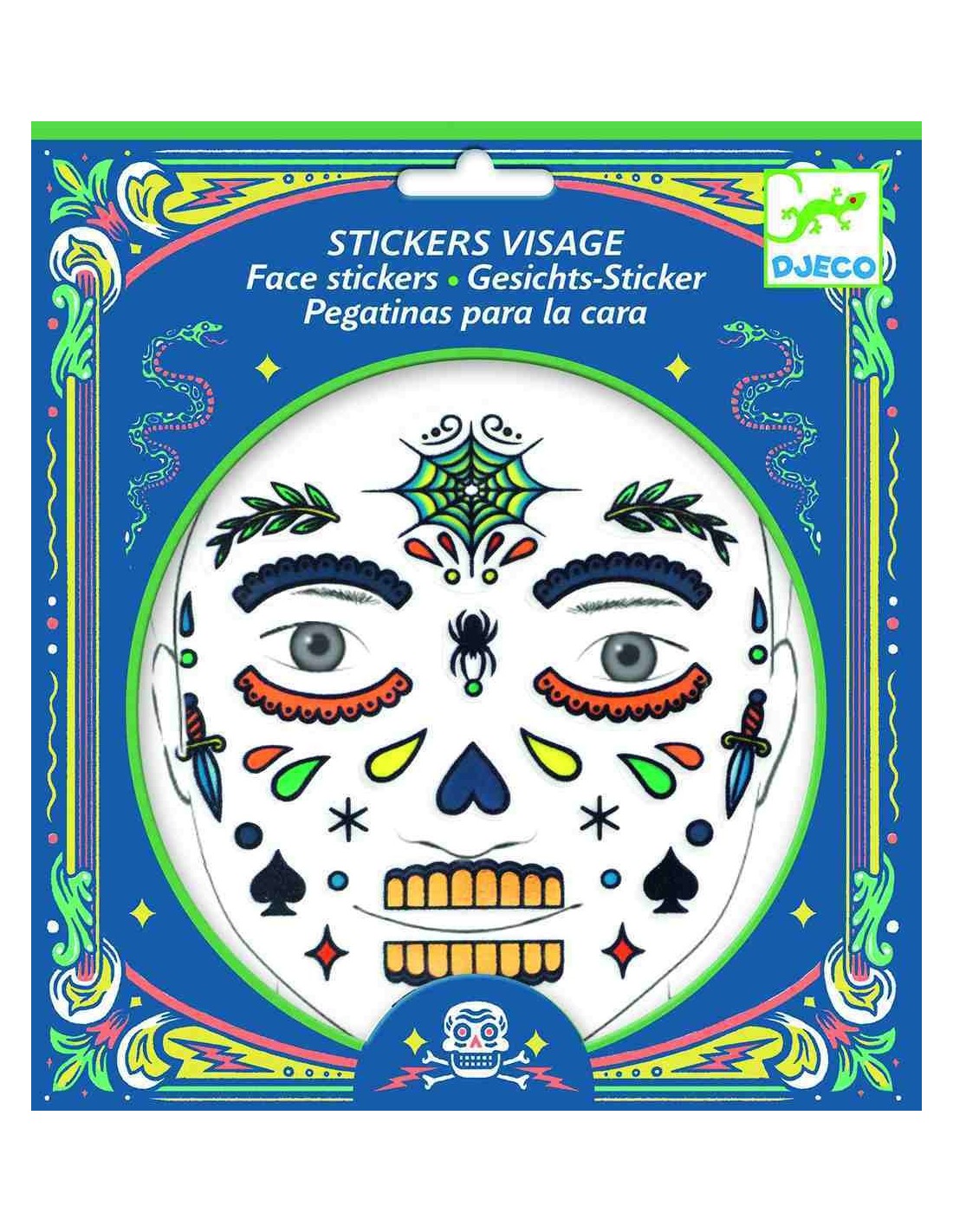 Imagina que ets un esquelet i passa-te'l en gran espantant els qui et vegin convertint la teva cara en una autèntica calavera amb aquests stickers especials de Djeco. Aquest set inclou més de 20 adhesius acolorits reutilitzables, amb tocs de vellut i efectes metàl·lics que faran que la teva transformació sigui increïblement realista. Els adhesius per a la cara de Calavera són fàcils d'aplicar i llevar, permetent-te gaudir d'una experiència divertida sense el desordre del maquillatge tradicional.