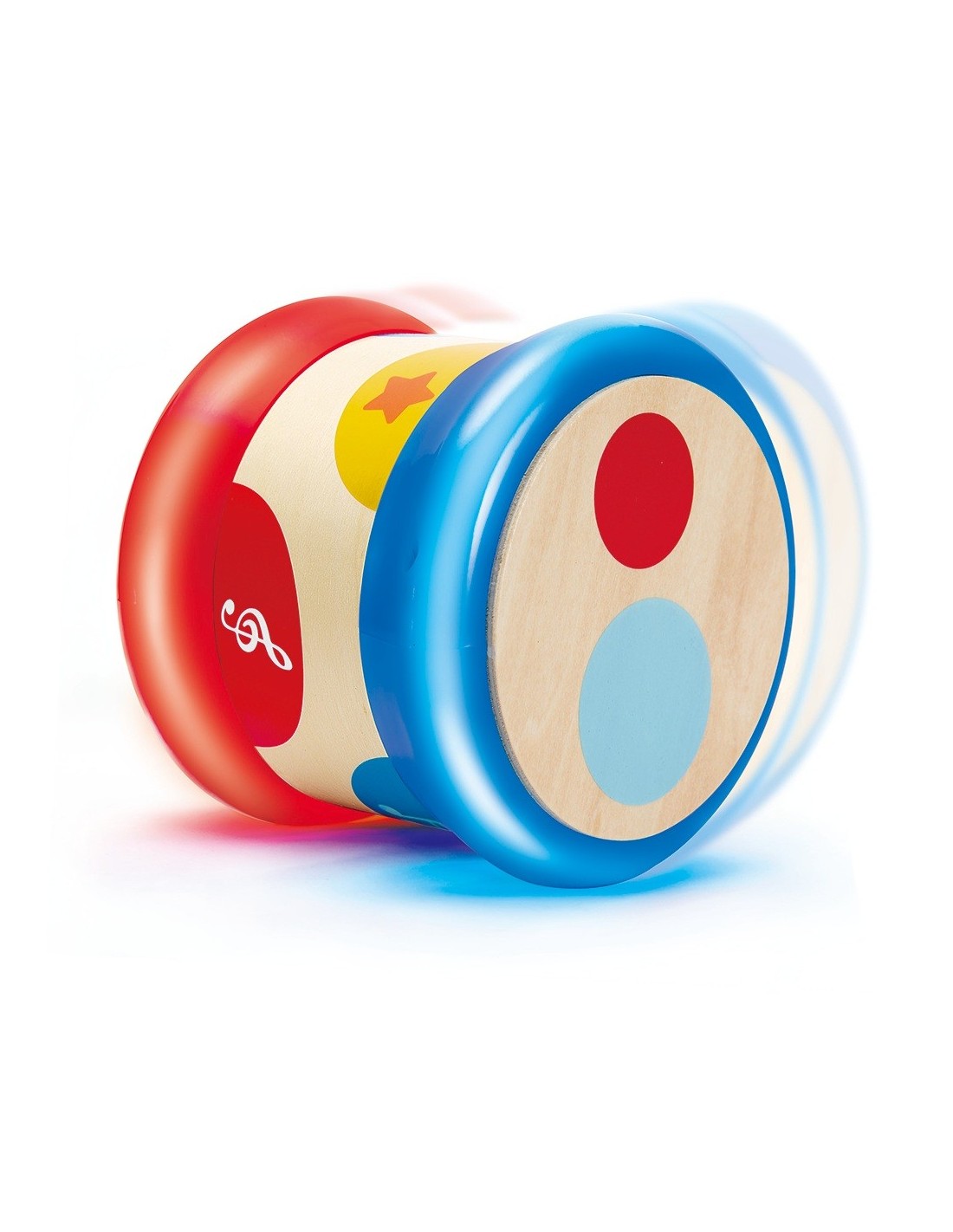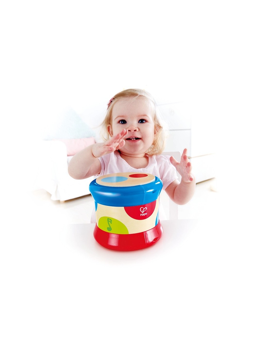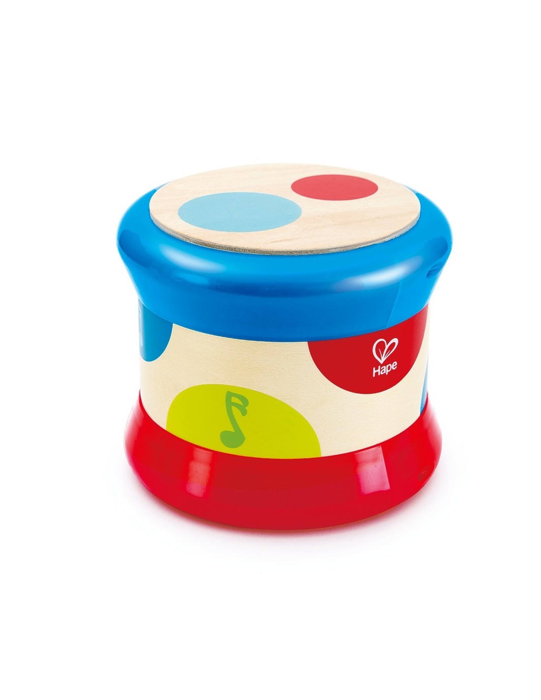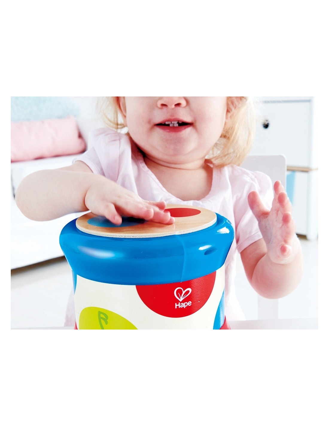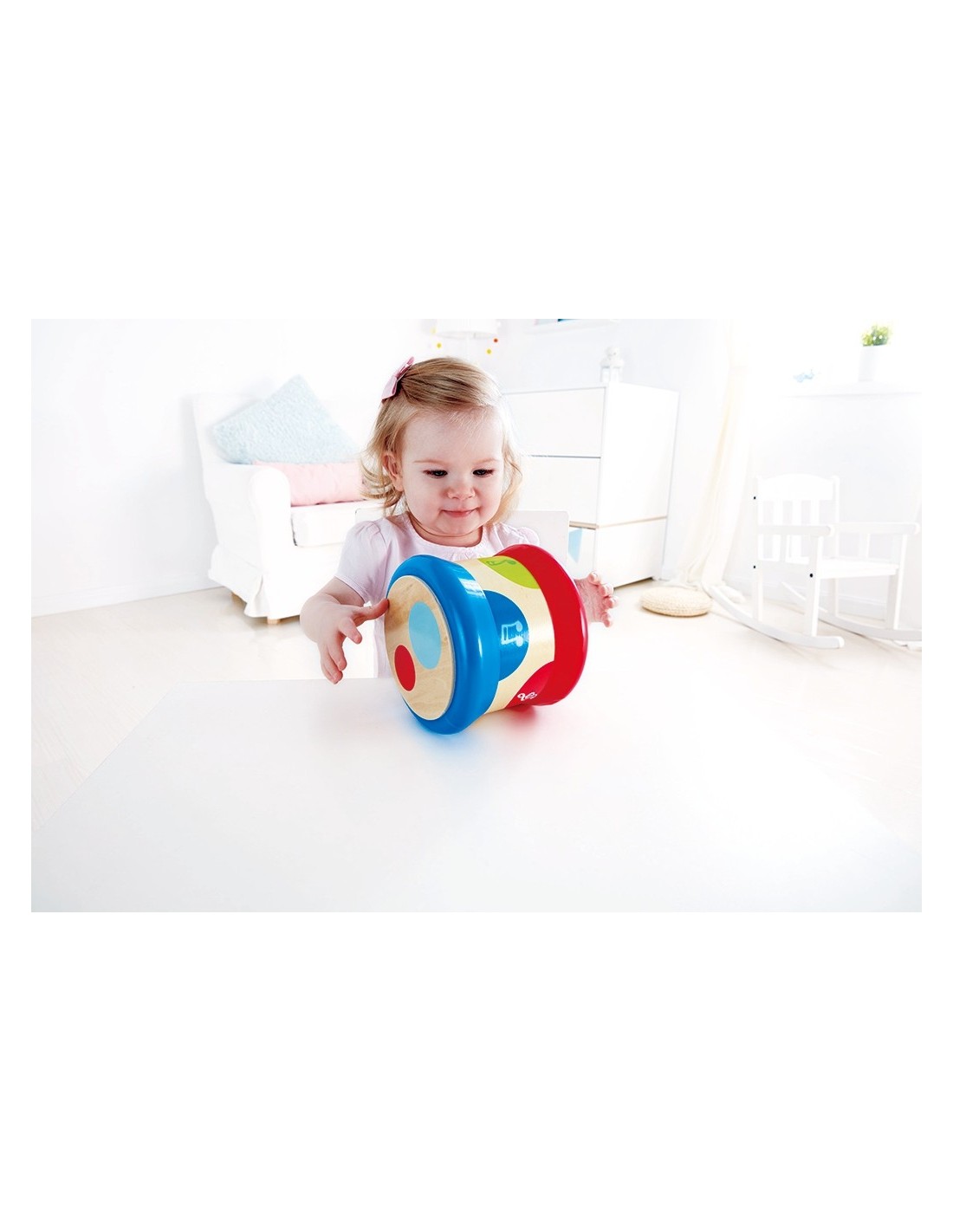 Hape ens porta aquest fantàstic tambor de fusta amb llum i so. Una joguina molt entretinguda amb la que els més petits s'ho passaran d'allò més bé. Poden tocar els cercles de colors per crear diferents ritmes instrumentals. A més, si el fan rodar el tambor emetrà una melodia acompanyada de llums, animant-los a que el persegueixin a quatre grapes. Al posar-lo dret la melodia s'atura i així poden seguir experimentant. Una joguina de qualitat pensada per a que experimentin amb els sons i estimular així els seus sentits.