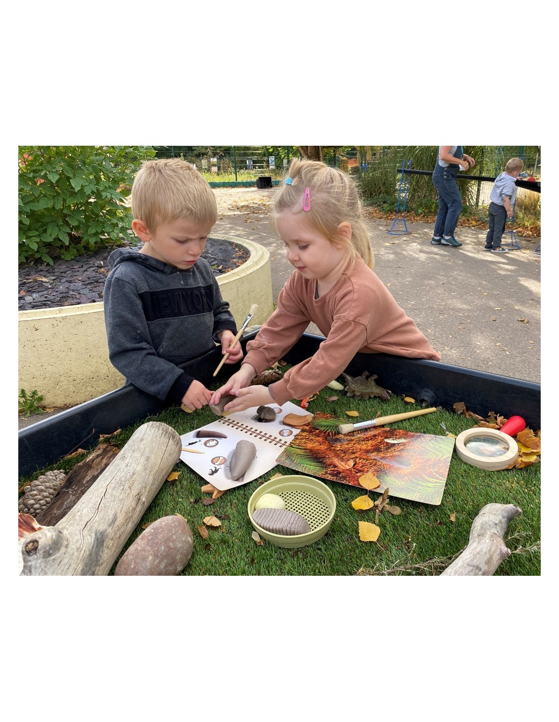 Les targetes estan fabricades en plàstic resistent, la qual cosa les fa aptes per al seu ús tant a l'aula com a l'aire lliure, fins i tot en activitats de joc amb aigua. Això les converteix en una eina versàtil que pot usar-se en qualsevol entorn educatiu. El lot inclou 16 targetes de grandària 27,5 x 21 cm, perfectes per a manipular i explorar de manera interactiva.