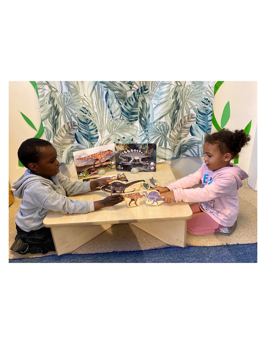 A més, algunes de les targetes es poden utilitzar com a targetes per a crear escenes de mons petits, la qual cosa fomenta la creativitat i el joc simbòlic. També es poden usar per a mesurar la grandària real de les dents i fer comparacions sorprenents sobre la magnitud d'aquests animals prehistòrics. Una forma emocionant de veure i aprendre sobre la grandària real de les dents d'aquests impressionants éssers!