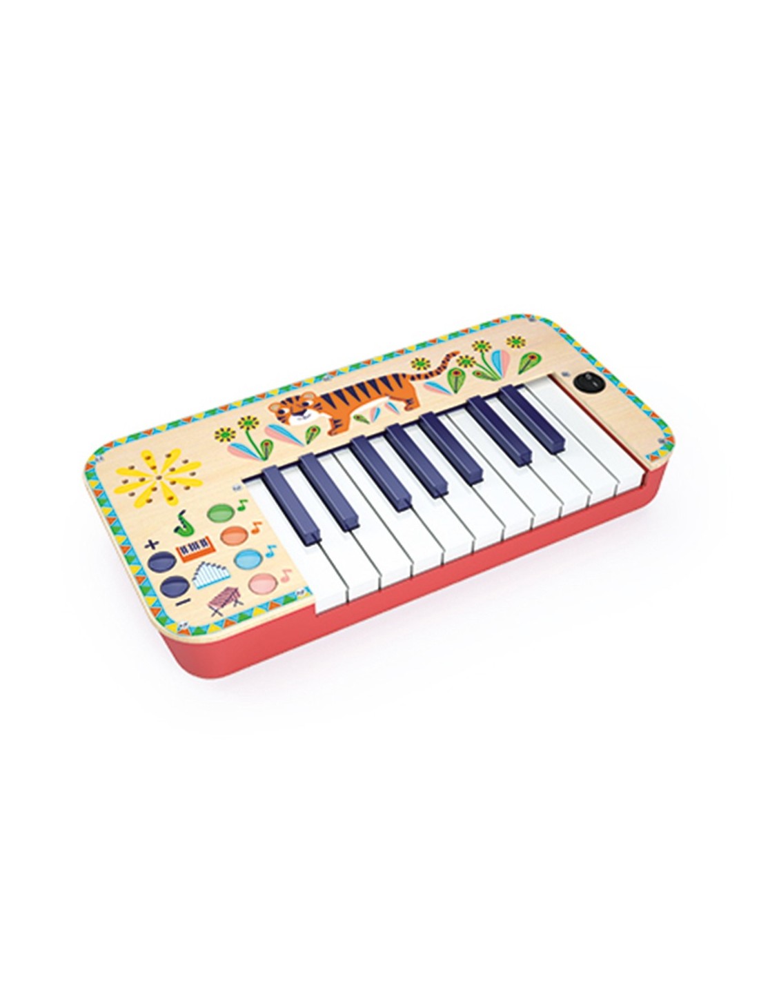 Justo lo que se espera de un piano, pero en este además se puede elegir el sonido de las teclas (saxofón, piano, órgano, y xilofon). A la niña le ha encantado!
