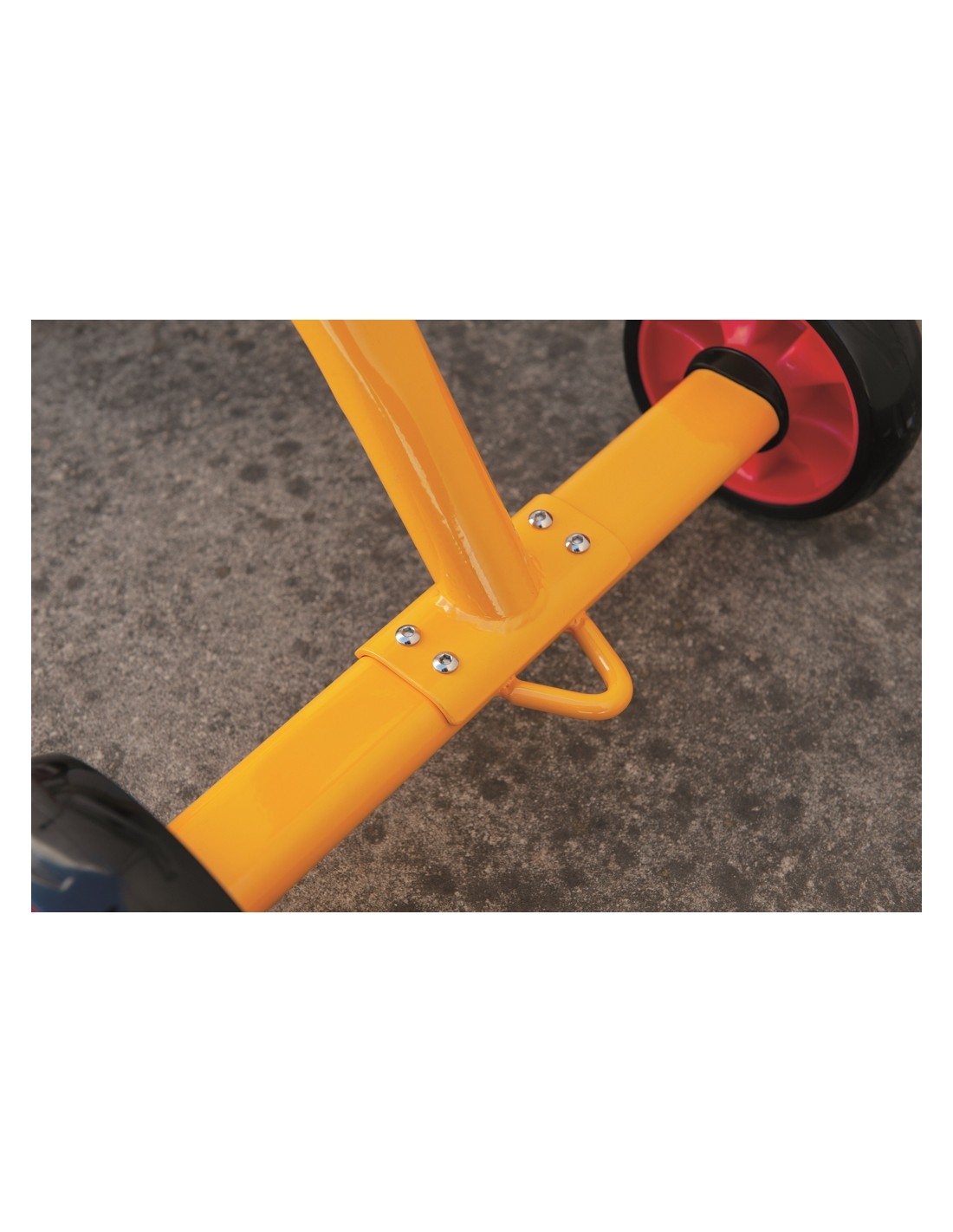 Tricicle segur i resistent especialment dissenyat per centres escolars i guarderies. Compleix amb les normes EN71 de la CE. És de fàcil muntatge. Una joguina fabulosa per jugar a l'aire lliure que ajudarà al teu petit a fer exercici físic i a practicar el seu equilibri. Aquest tricicle està pintat amb una pintura molt resistent a la corrosió i als cops. El seu seient anatòmic és de polietilè, així que aguantarà perfectament la intempèrie. Així, tot i que el tricicle estigui al pati, aguantarà tot tipus de temps. En el centre del xassís té un tub d'acer preparat per a l'ús intensiu. Els pedals d'aquest fantàstic tricicle són antilliscants i el seu eix i el suport estan fets d'una sola peça d'acer. Si ens fixem en les rodes, no té radis, així que resistiran la força de l'abrasió. Oferim servei de recanvis i 2 anys de garantia del quadre i la forquilla.