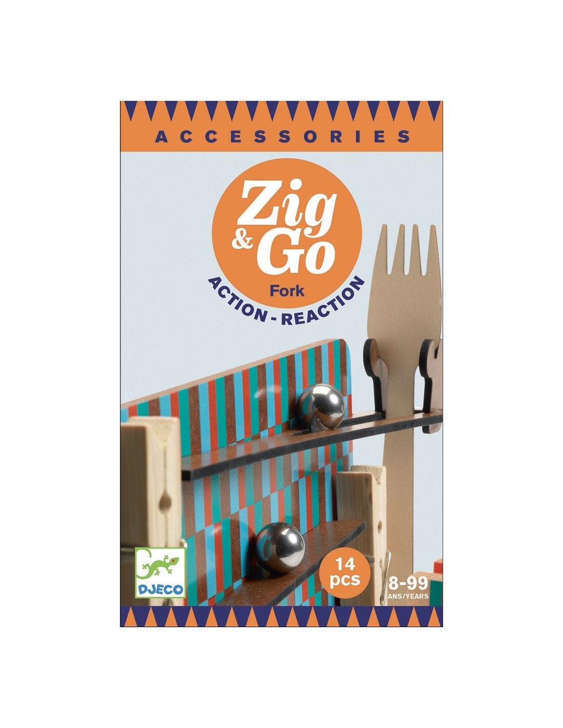Zig&Go és una gamma d'activitats de construcció d'acció-reacció imaginades per Jean-Rene Menard, un il·lustrador i dissenyador de joguines. Dissenyi el disseny amb el disseny precís per a garantir que la reacció en cadena flueixi per a completar el circuit. És un joc de comprensió que els nens poden aprendre com la velocitat, la distància entre ells i el pes d'un accessori influeixen en com ocorre la reacció. Una vegada que comenci, no podrà detenir-se. Tota la família voldrà participar.
