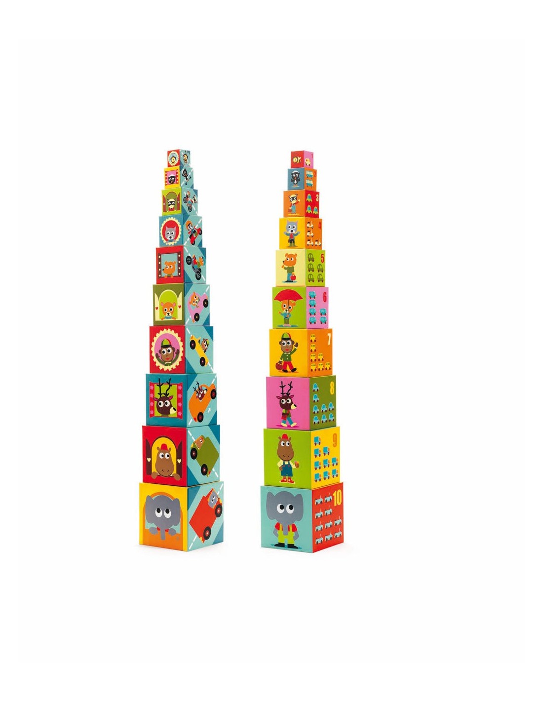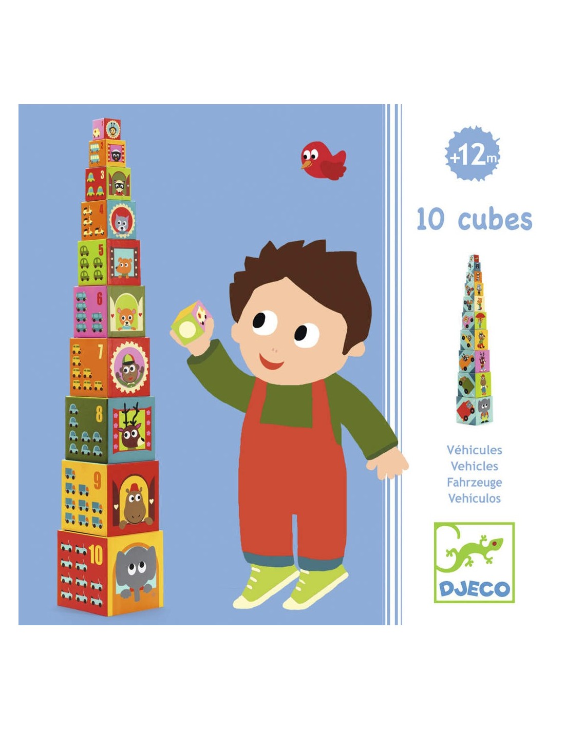Aprende los números del 1 al 10 a partir de estos animalitos y sus vehículos. Este juego de cubos hará que practiques tu equilibrio, aprendas el orden y el valor de cada número y te lo pases genial. Hay 10 cubos diferentes y en cada cubo hay: el dibujo de un animalito, un número con el mismo número de coches, el animalito que sale de una ventana y el animalito yendo en coche. Estos cubos apilables están llenos de colores vivos, son muy ligeros (para que el niño los pueda manipular sin problemas) y son resistentes. Así, podrás jugar y jugar durante horas para que no se acabe la diversión.