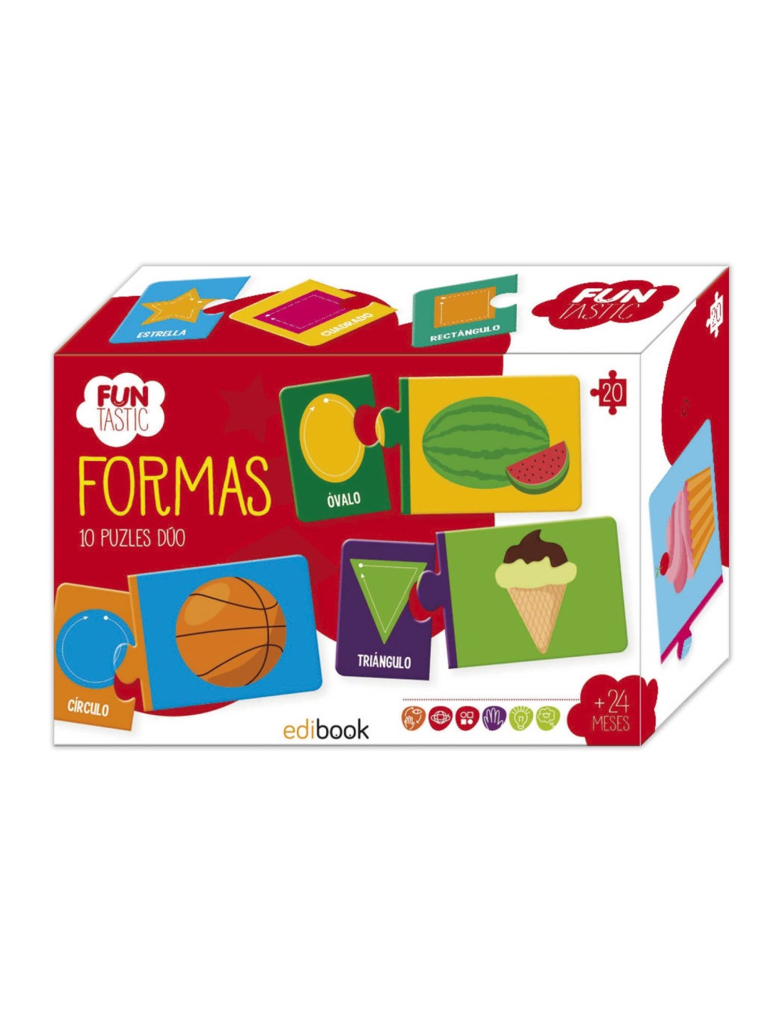 Te presentamos este fantástico juguete, 10 puzles dúo sobre las formas, para que los peques se diviertan mientras se familiarizan con las distintas formas y, además, desarrollan sus habilidades.
