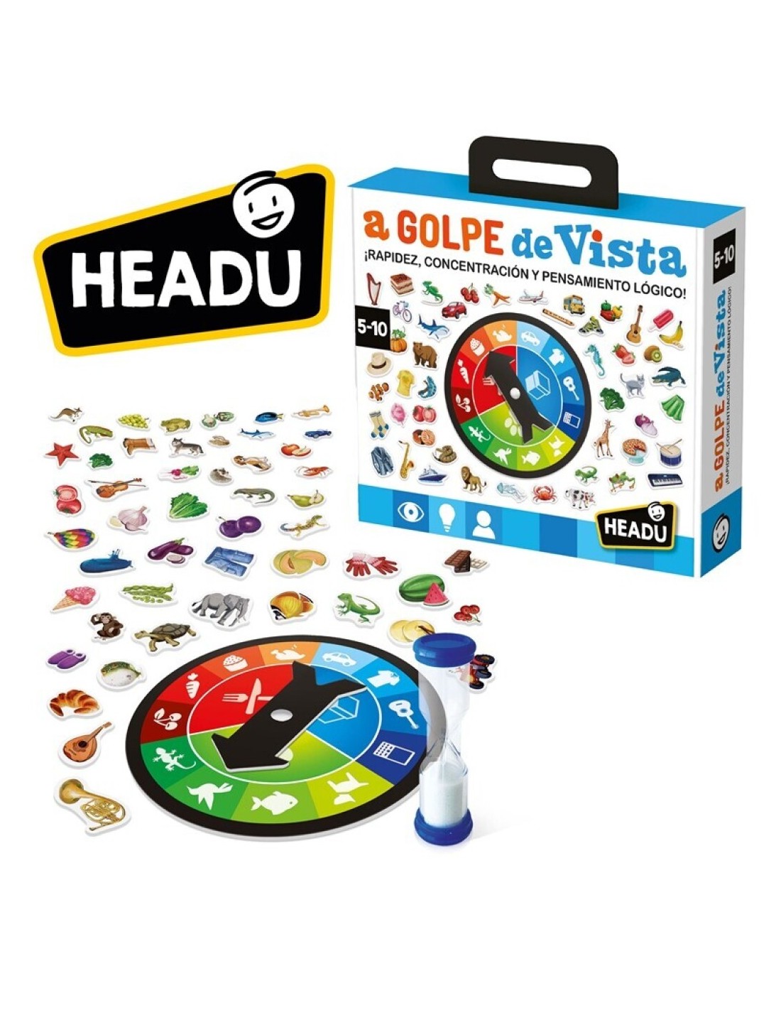 Te presentamos A Golpe de Vista de Headu, un juego de mesa lleno de ritmo, observación y diversión para toda la familia. Gira la ruleta, observa con atención y encuentra los objetos o personajes indicados antes que los demás. Solo el ojo más rápido logrará alzarse con la victoria.