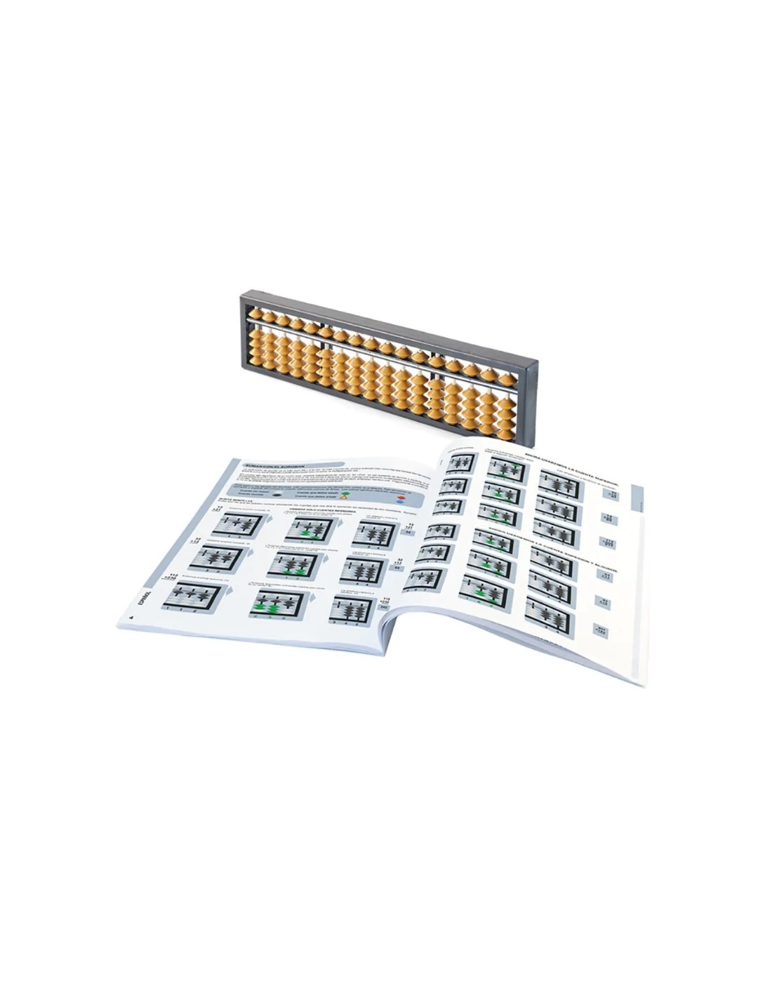 El pack del Soroban incluye un cuadernillo completo con ejercicios diseñados para maximizar el aprovechamiento del ábaco. Este cuadernillo guía a los niños a través de diversas operaciones aritméticas, ofreciendo una estructura clara para el aprendizaje y la práctica. Así, los niños pueden progresar desde operaciones básicas hasta problemas más complejos, adaptando el uso del ábaco a su nivel de habilidad.