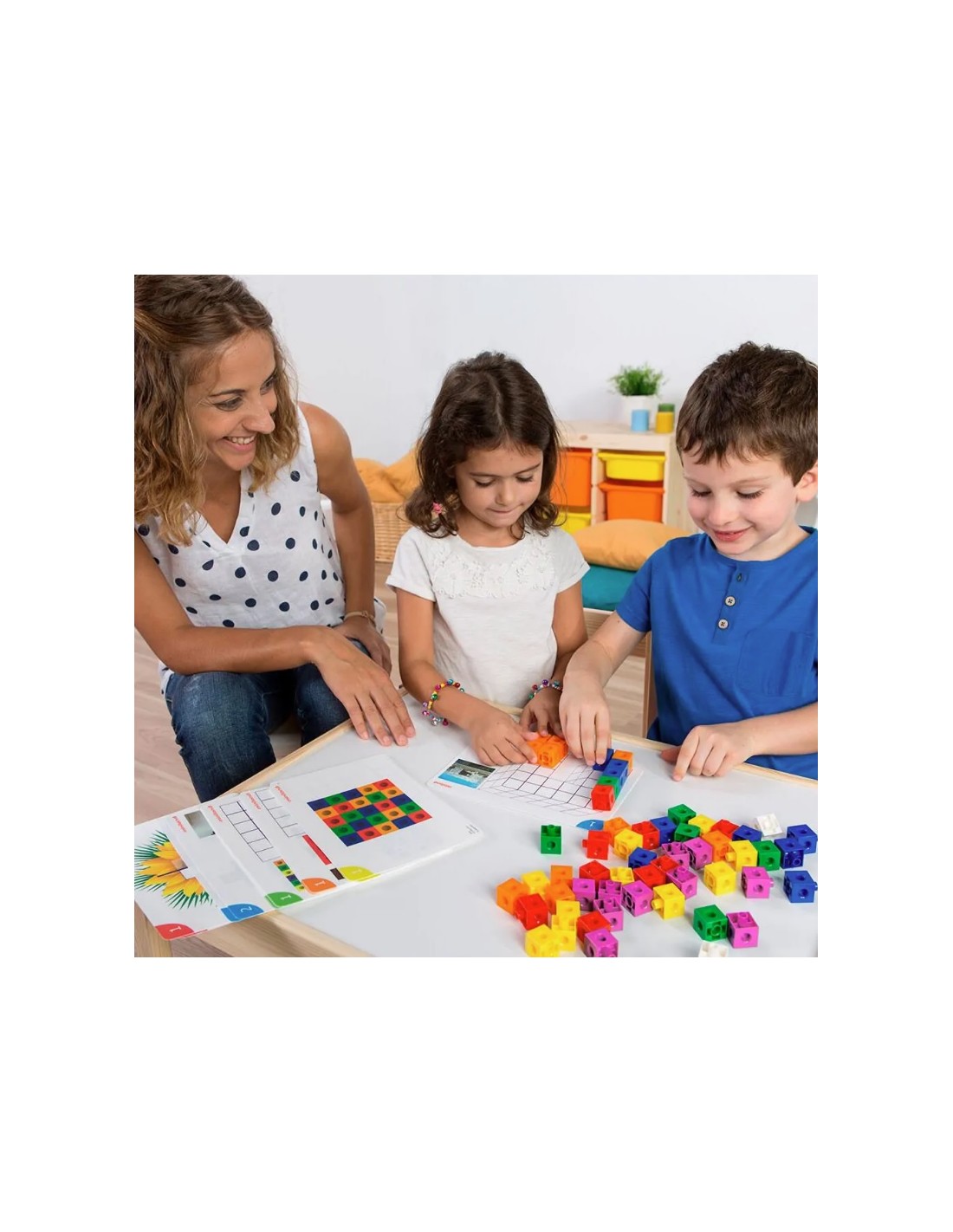 Acitivty Cubes es un juguete perfecto para desarrollar ejercicios con los primeros conceptos matemáticos. Los cubos miden 2 cm y están fabricados en plástico. També, son encajables entre ellos por las 6 caras. El juego incluye una colecció de 20 actividades que servirán de apoyo a varias actividades de manipulación, y hacen que el niño adquiera las primeras nociones de lógica matemática. También podrás utilizar los cubos como regletas en diferentes campos: fraccionamiento del plano, identificación en la cuadrícula y las propiedades, reproducción en 3D, simetría y organización del espacio.