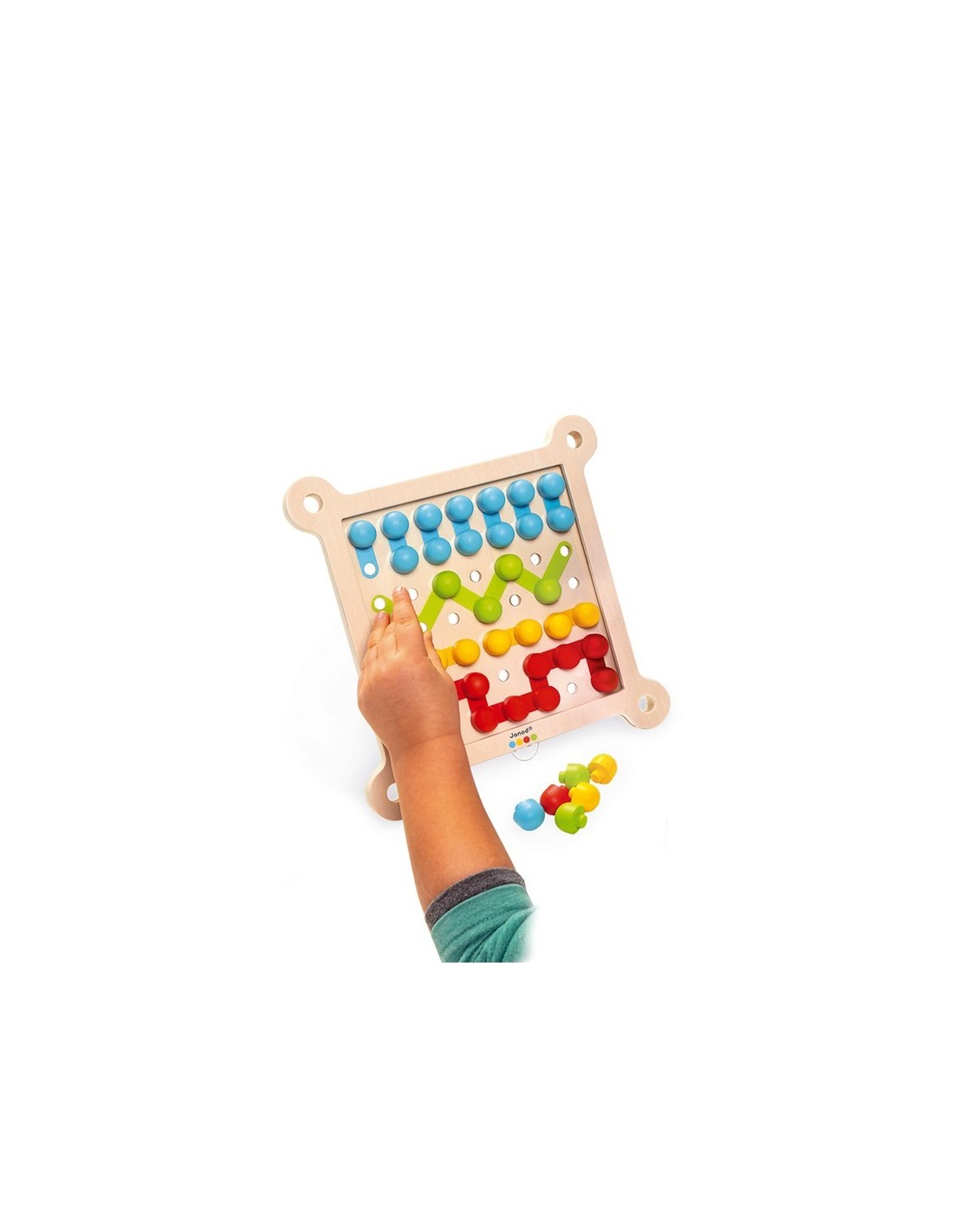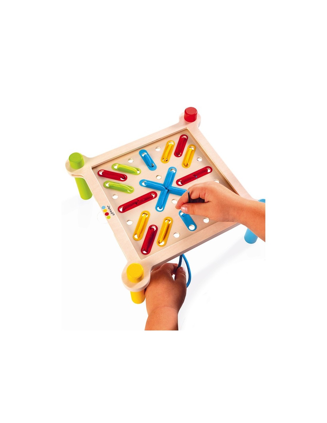 Te presentamos, de la mano de la marca francesa Janod, este juego para aprender a enlazar. El juego consiste en una mesa de entrelazado extraordinariamente ingeniosa y evolutiva tanto en su forma como en sus funciones.