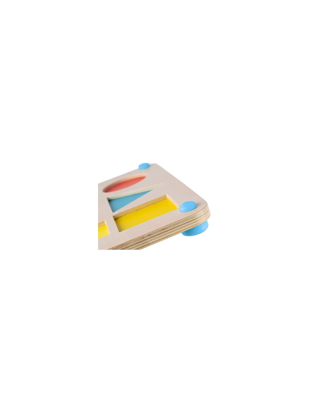 Este juguete trabaja la motricidad fina, la construcción visual y espacial, el descubrimiento de las formas y los colores. Las piezas de este juguete han sido pintadas con pintura al agua.