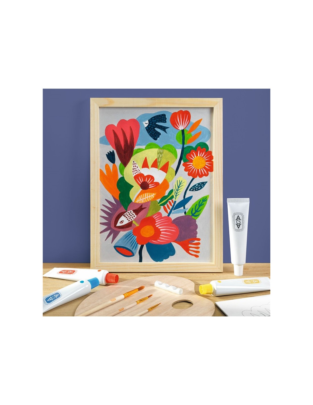 Atelier 23 Mezcla de Colores de Djeco es una propuesta artística pensada para quienes disfrutan experimentando con la pintura y observando cómo los colores se transforman cuando se combinan entre sí. Este kit, recomendado a partir de los 12 años, invita a trabajar sobre un lienzo ilustrado con un delicado motivo floral que espera ser completado a través de una paleta cromática creada por ti misma o mismo. A partir de los colores primarios y el blanco, podrás elaborar tonos suaves, vibrantes, matizados o intensos, descubriendo las infinitas posibilidades que ofrece la mezcla manual de pintura.