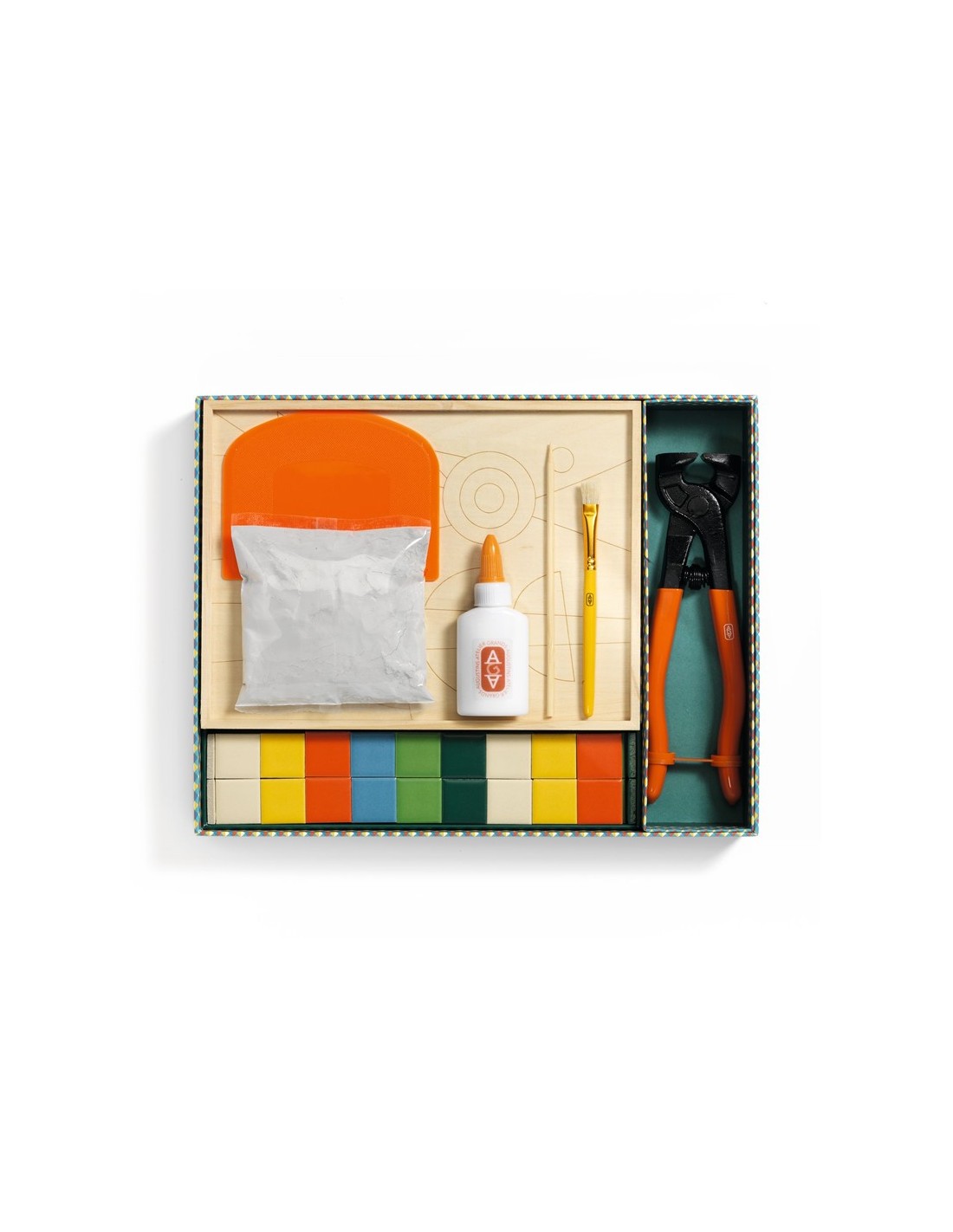 Atelier 73 Mosaico Abstracto de Djeco propone una experiencia artística que conecta tradición y diseño contemporáneo. Este kit introduce la técnica del mosaico mediante la creación de una composición abstracta sobre una base de madera. A través del trabajo con pequeñas teselas de cerámica, la obra va tomando forma poco a poco, permitiendo disfrutar de un proceso manual lleno de precisión, calma y descubrimiento. Es una actividad ideal para adolescentes y adultos que buscan una forma de expresión creativa diferente y pausada.