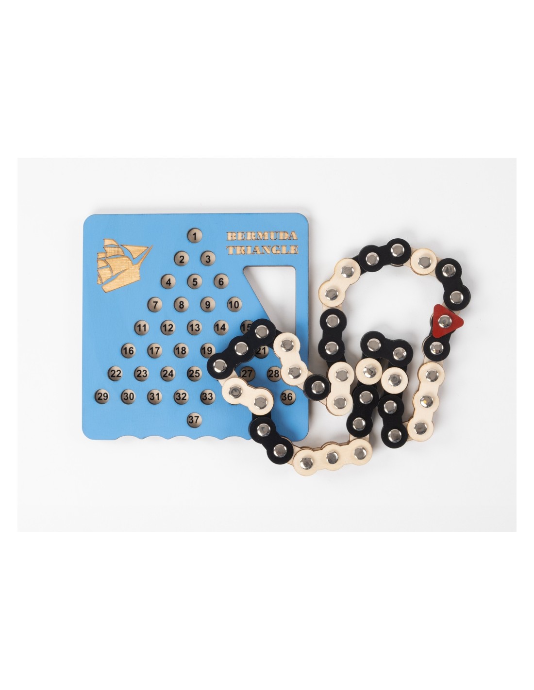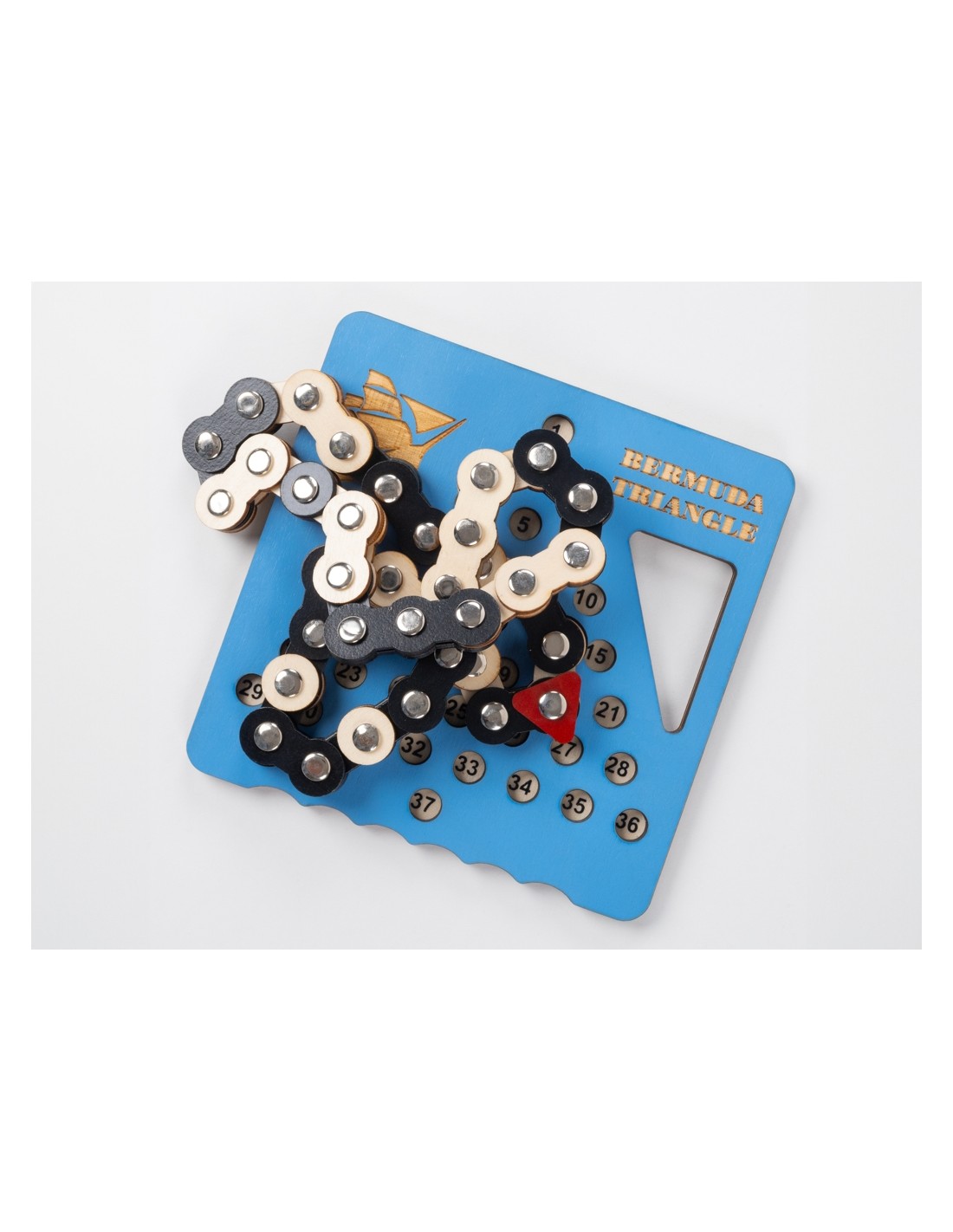 Bermuda Triangle es un rompecabezas de lógica de la colección Constantin Puzzles que te desafía a navegar por un misterioso triángulo repleto de retos. Tu misión es colocar la cadena de madera de manera precisa en la rejilla, explorando hasta 37 posiciones iniciales diferentes y encontrando la combinación correcta en cada caso.