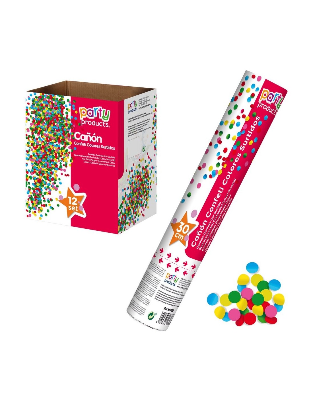 Un cañón de confeti de 30 cm listo para ser disparado y que llenes cualquier acontecimiento de color. Tan solo tendrás que apuntar, girar el tubo y... ¡explosión de confetti! Un objeto indispensable para cualquier fiesta, que hará que sea todo un éxito. Un cumpleaños, Año Nuevo... ¡cuando tú quieras! Garantía de que será una fiesta a todo color.