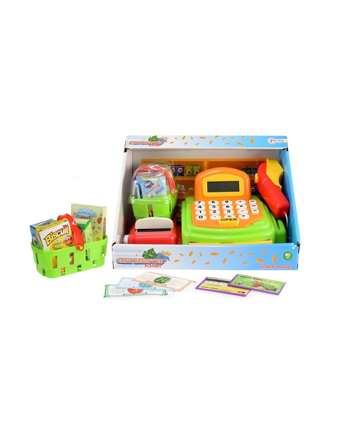 ¡Ha llegado el momento de ir al súper a hacer la compra de la semana! Para hacerlo, será imprescindible contar con esta Caja Registradora con Accesorios. Este producto tiene un montón de accesorios con los que podrás jugar e interactuar. Por ejemplo, dispone de una calculadora con la que podrás sumar todos los precios y decirle el total a tu cliente. También incluye una cinta, un detector de códigos de barras y dinero y tarjetas para que los clientes puedan pagar lo que han comprado. A parte, encontrarás diferentes productos servidos dentro de una cesta. ¡No necesitas nada más! Bueno, quizás necesitarás un poco de paciencia para aguantar a según qué cliente... ¡Disfrútala!