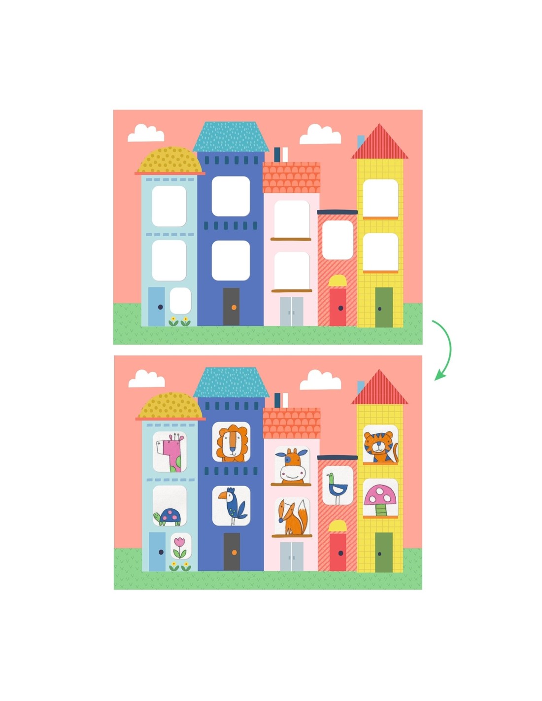 Ventanas de casas, ventanas de autobuses, ventanas de barcos, ¡todas vacías! ¿Las llenamos con dibujos? Este conjunto creativo Calcar es un arte de Djeco contiene 12 imágenes con papel de calcar, a través de los cuales los peques trazarán los motivos en las tarjetas con un lápiz y los llenará de color.