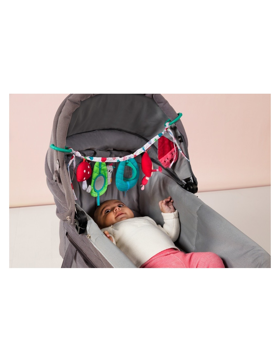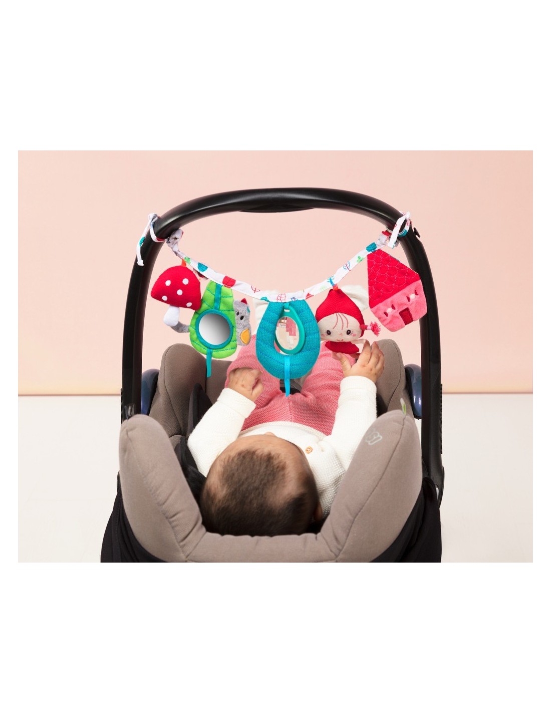 Lilliputiens nos trae a esta preciosa caperucita en su versión para colgar. Ya sea en trayectos en coche o durante paseos por el campo, el bebé estará entretenido sí o sí con esta guirnalda de actividades. Es fácil de colocar y se adapta a cualquier cochecito o silla de bebé para el coche. Tu bebé desarrollará sus sentidos y sus habilidades motrices con sus colores, su espejo y el ruido que hace cuando la arrugas. Deja que tu bebé descubra formas, personajes, tejidos y ruidos distintos. Los viajes en coche ya no serán aburridos, sino un festival de risas de tu bebé.