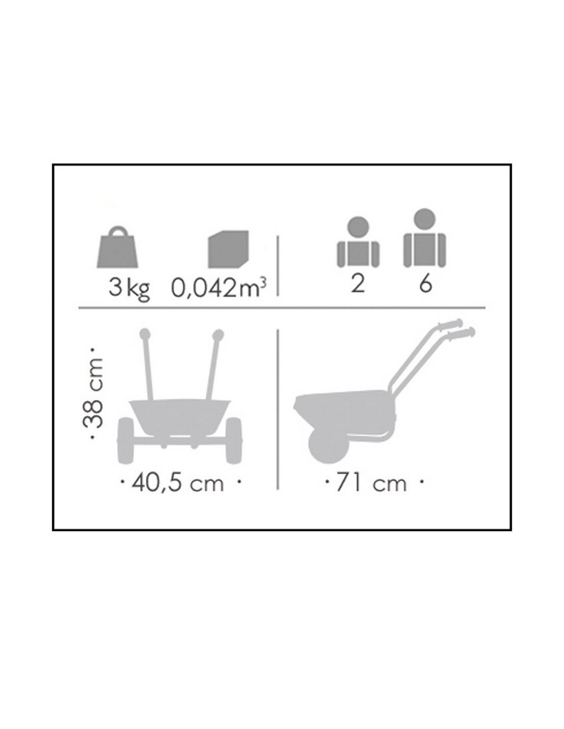 Descubre esta fantástica carretilla metalizada de Andreu Toys que ofrece gran diversión para nuestros peques de 3 a 6 años. El sólido chasis y las 2 ruedas la mantienen estable, mientras la bandeja está reforzada y protegida para soportar un tratamiento rudo. Sus medidas son de 40.5 x 71 x 38 centímetros. Con amplio espacio de carga y empuñaduras de goma maciza, es garantía de un manejo seguro por los niños y niñas más pequeños. Soporta hasta 50kg de peso, por lo que es ideal para jugar juntos en el parque o la playa y transportar arena, juguetes, agua… ¿Qué más se os ocurre?
