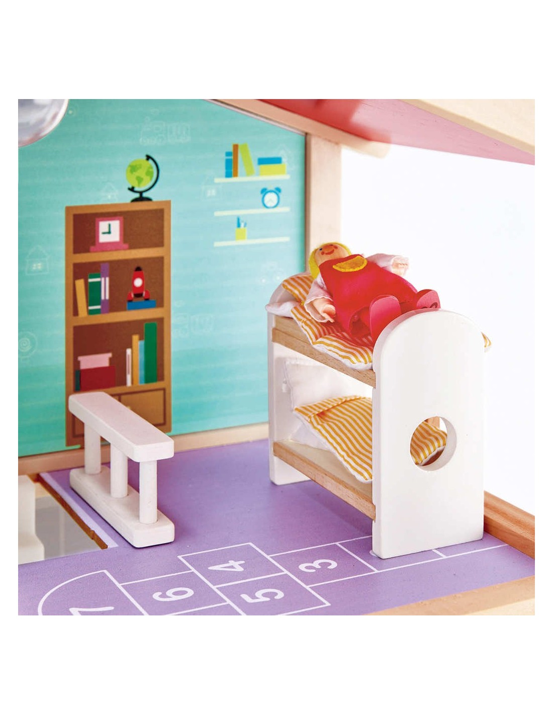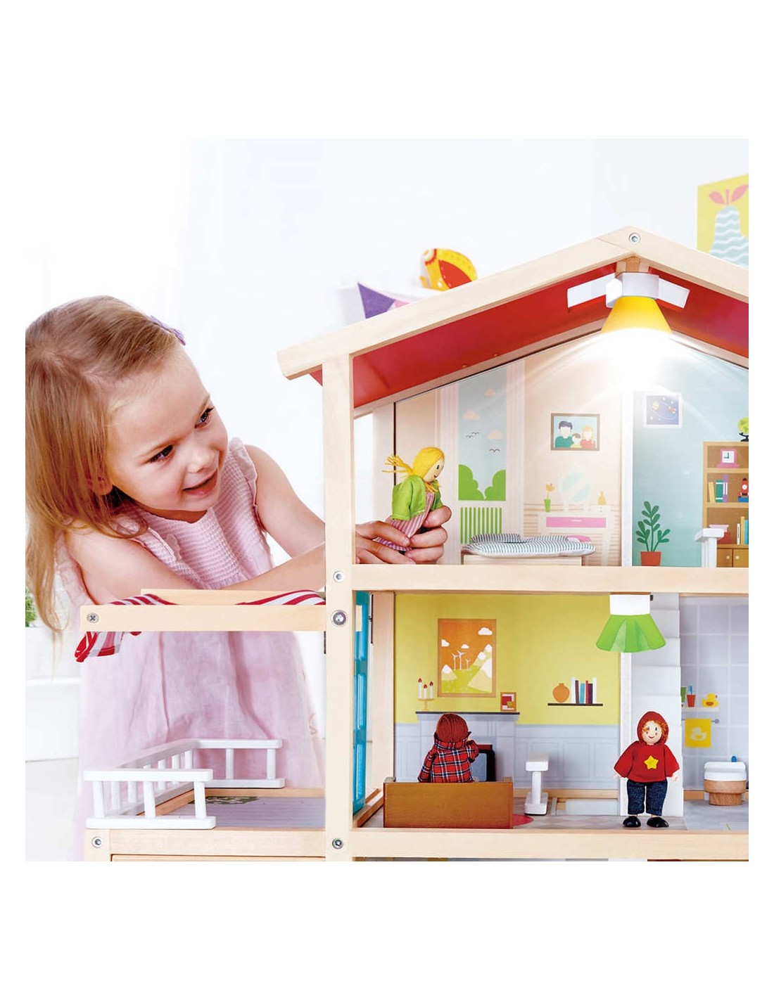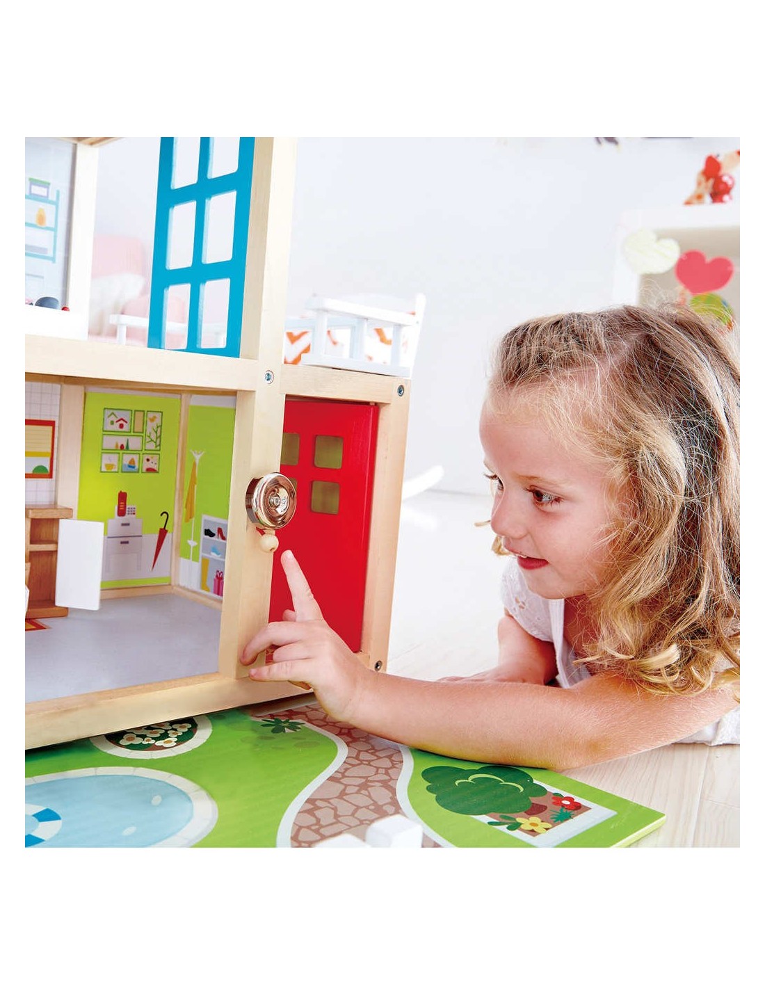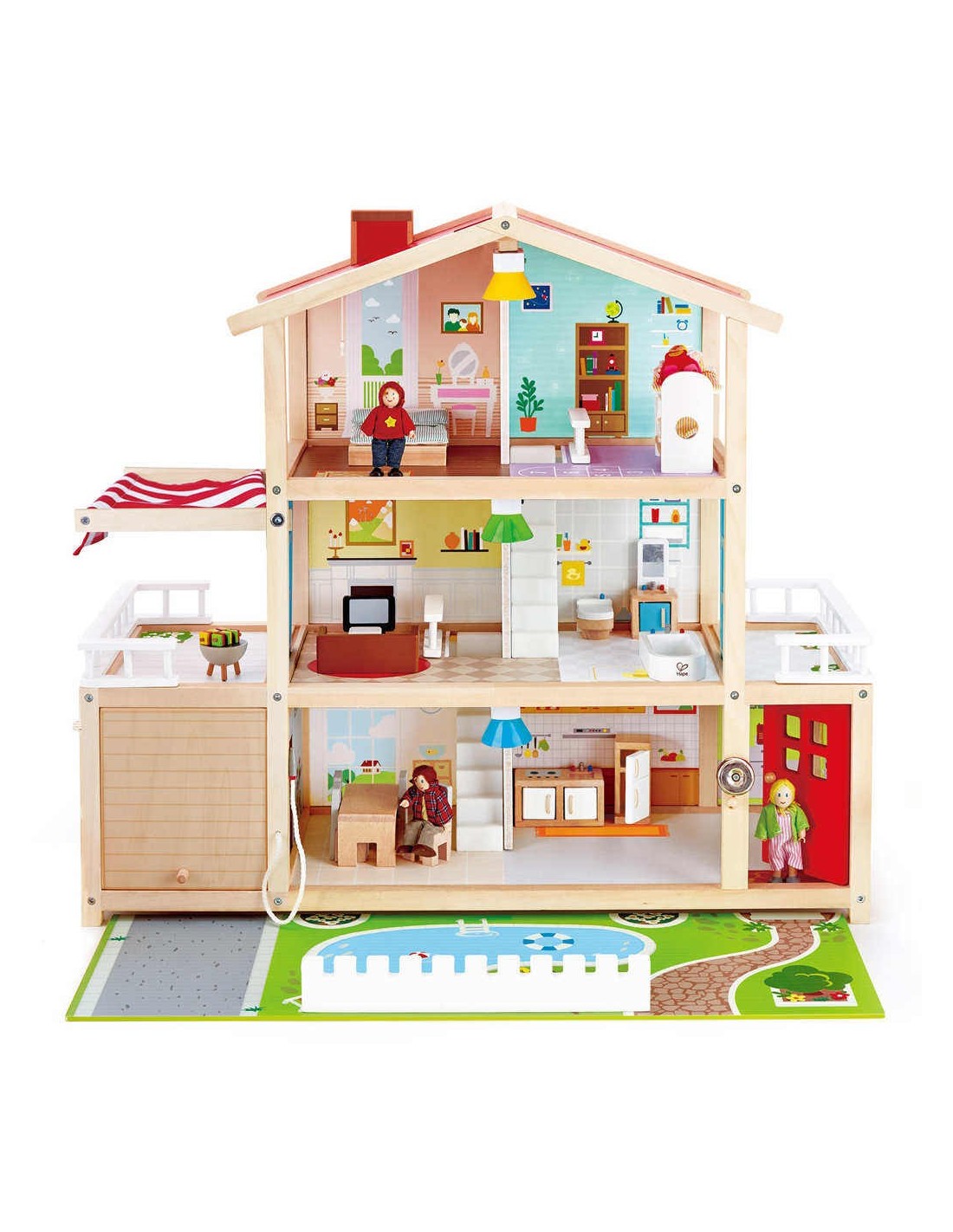 ¡Bienvenido a la Mansión Familiar de Hape! Ponte cómodo/a y prepárate para jugar y divertirte como nunca. Aquí encontrarás 29 piezas en las que se incluyen diferentes muebles, personajes y otros objetos. Los peques podrán reorganizar el mobiliario y representar las rutinas diarias y las de su familia. Además, esta mansión incluye lámparas móviles y un timbre. ¡Ding Dong! ¿Quién es? Pasa, pasa, que esta mansión te va a encantar.