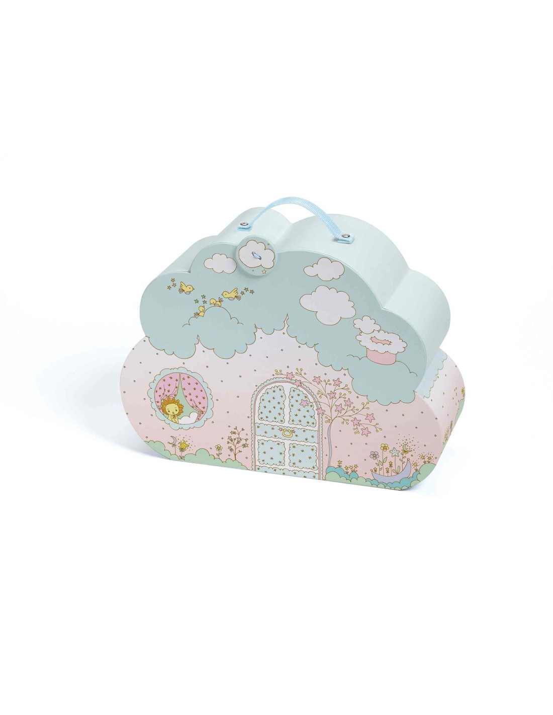 Descubre la casa de Sunny y Mia para las figuras Tinyly de Djeco, un estuche nuve-casa y dos figuras entrañables para niños y niñas a partir de 4 años. Esta bonita casa ilustrada que representa una nube es muy fácil de transportar gracias a su asa y se abre para descubrir una decoración de casa de muñecas para jugar con tus figuras Tinyly. En esta bonita casa, descubrirás un interior decorado con una cocina, huecos para dejar tus figuritas y una mesa para comer.