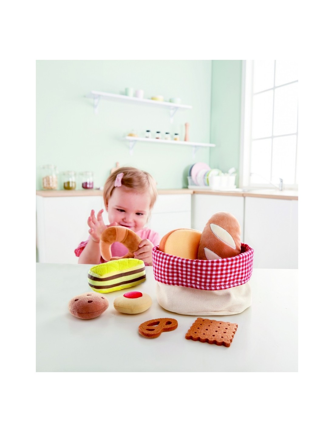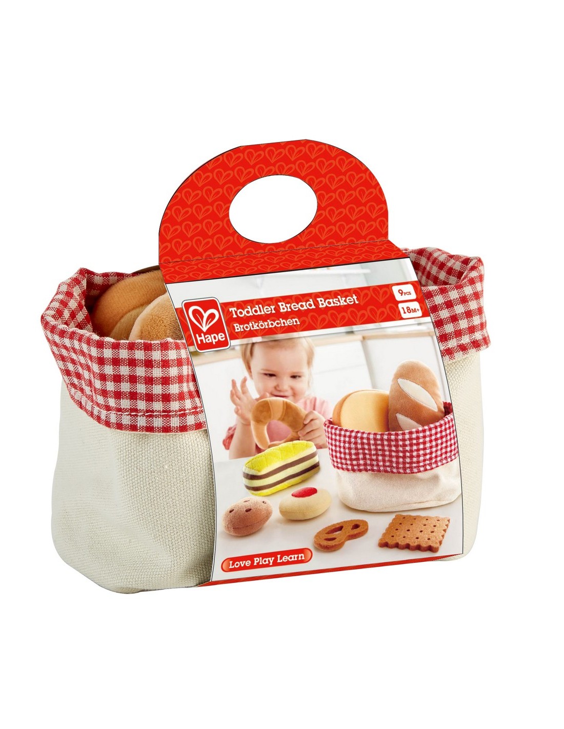 ¡Esta cesta de pan de juguete de Hape es una monada! ¡Los más pequeños de la casa podrán llenar esta bonita cesta de pan y productos de repostería para sus amigos! Los productos tienen un aspecto delicioso y pueden ser el complemento ideal para cualquier tipo de cocinita. Está elaborado en fieltro y textil suave y realista.