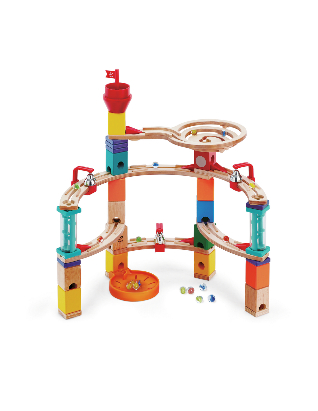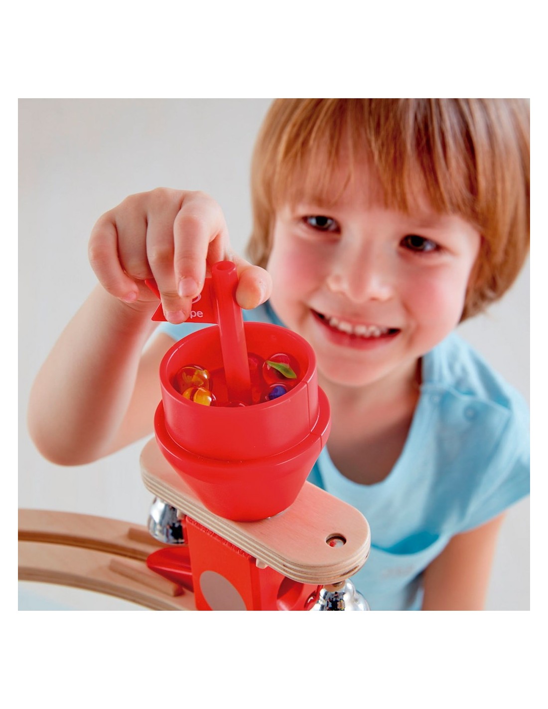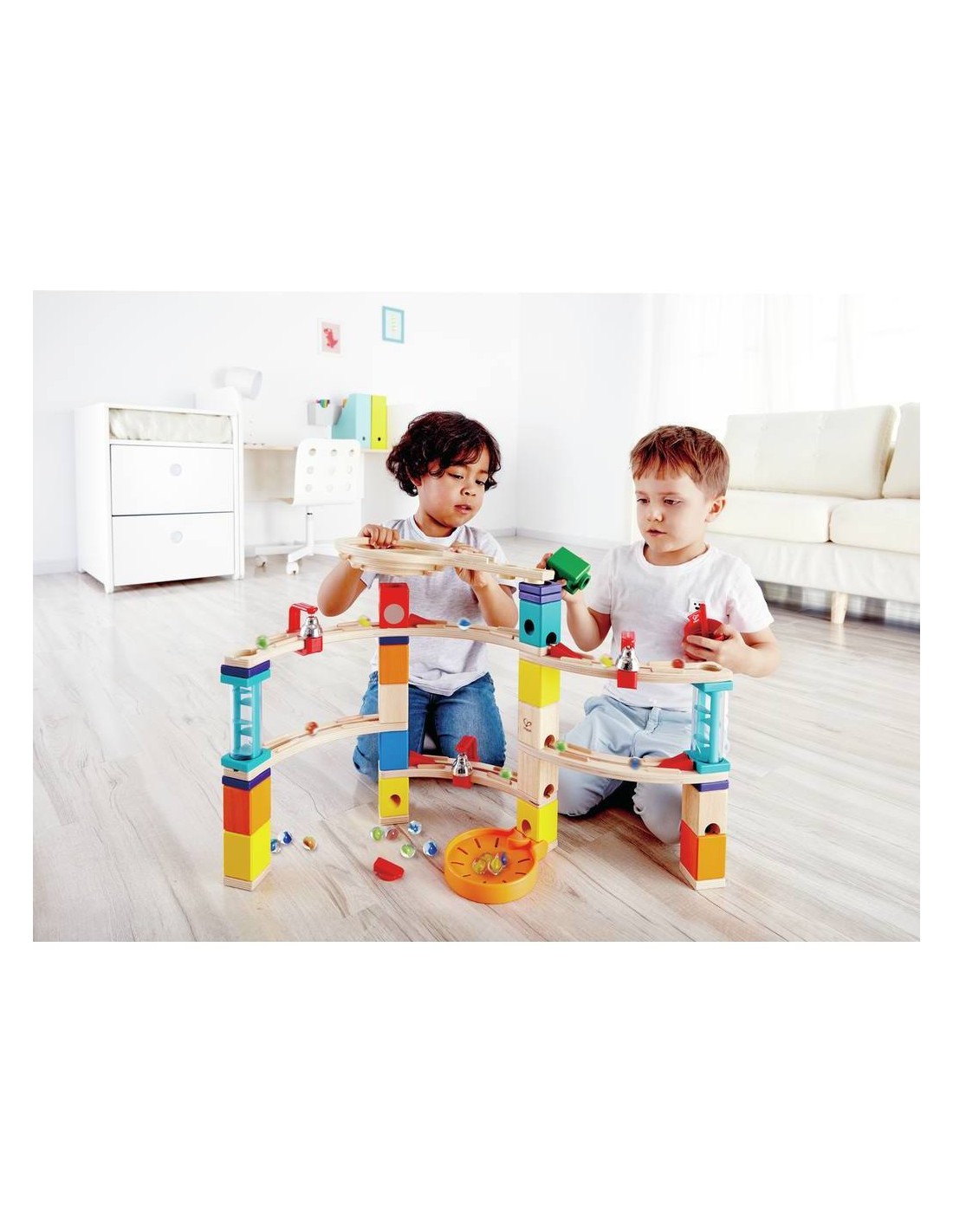 ¡Ayuda a las canicas a escapar de la torre giratoria lo más rápido posible! Después caerán por el raíl haciendo sonar las tres campanas que cuelgan del circuito. ¡Súper divertido! Ingeniería alemana diseñada para crear infinitas posibilidades de construcción para pensamientos espaciales. Cada uno de los diferentes bloques de color tiene una función diferente, práctica divertida para el pensamiento lógico y de ingeniería. Juego pensado para jugar toda la familia y pasar juntos tiempo de calidad Fabricado con un compromiso de sostenibilidad, cumple con las normas internacionales de seguridad y calidad. Circuito: 58cm (Alto) x 63cm (Ancho) x 26cm (Largo) Packaging: 36cm (Alto) x 52,5cm (Ancho) x 8cm (Largo)