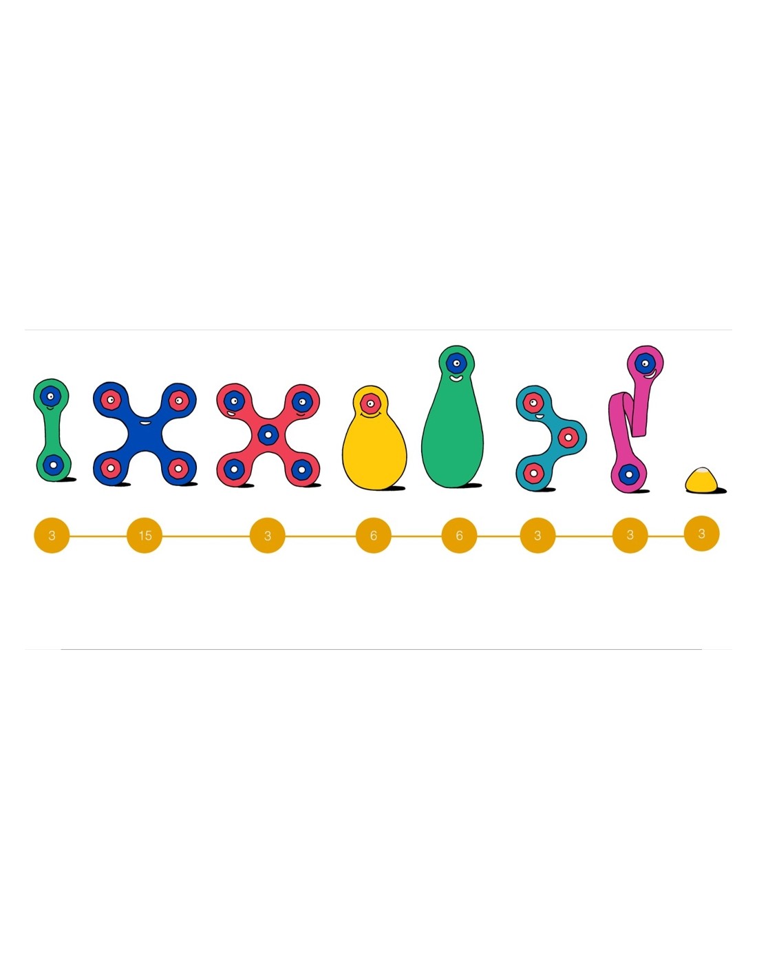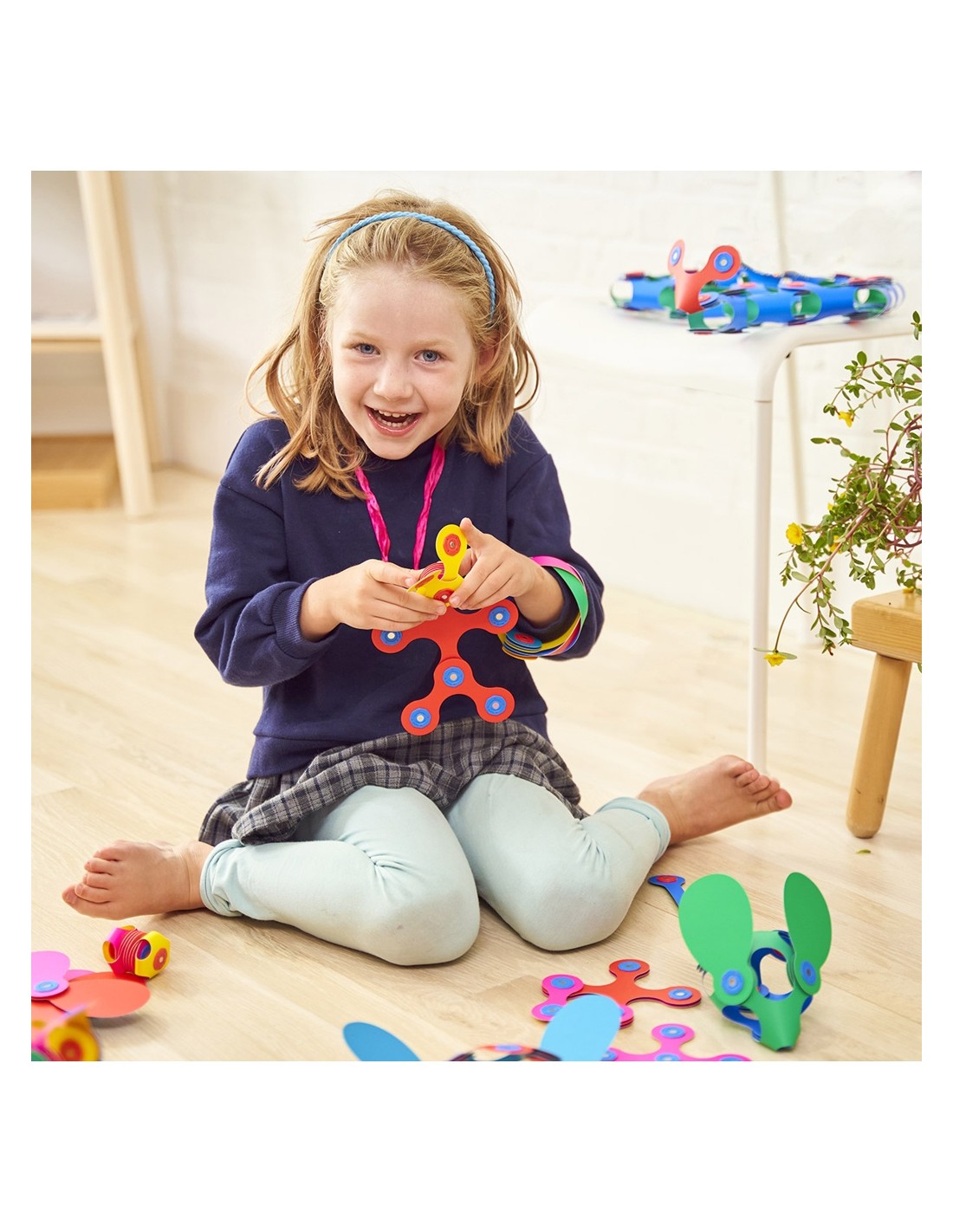 El set incluye 42 piezas en formas flexibles que fomentan la creación sin límites. Gracias al diseño patentado de Clixo, los niños pueden combinar las piezas de diferentes maneras, aprendiendo a doblarlas, girarlas y conectarlas de forma segura. Además, cuenta con una guía de inicio rápido con cinco diseños iniciales que ayudan a empezar a construir fácilmente.