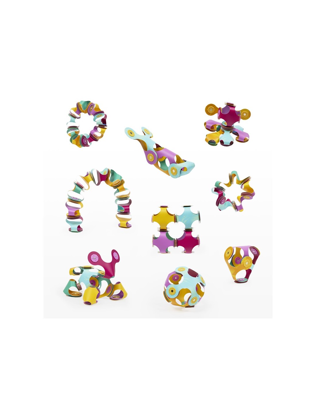 Las piezas están fabricadas con papel sintético reciclable de primera calidad, son flexibles y se pueden doblar, enroscar y conectar entre sí gracias a sus poderosos imanes. Con un solo clic quedan todas fijadas, lo que permite crear fácilmente estructuras 2D y 3D sin esfuerzo. Edad recomendada: 4 años en adelante.